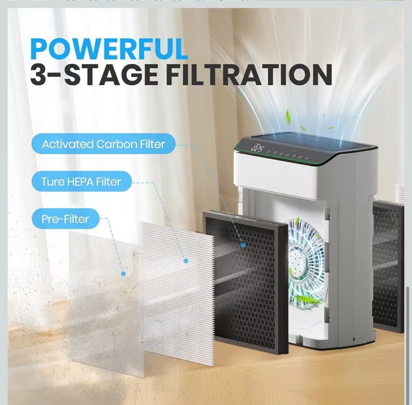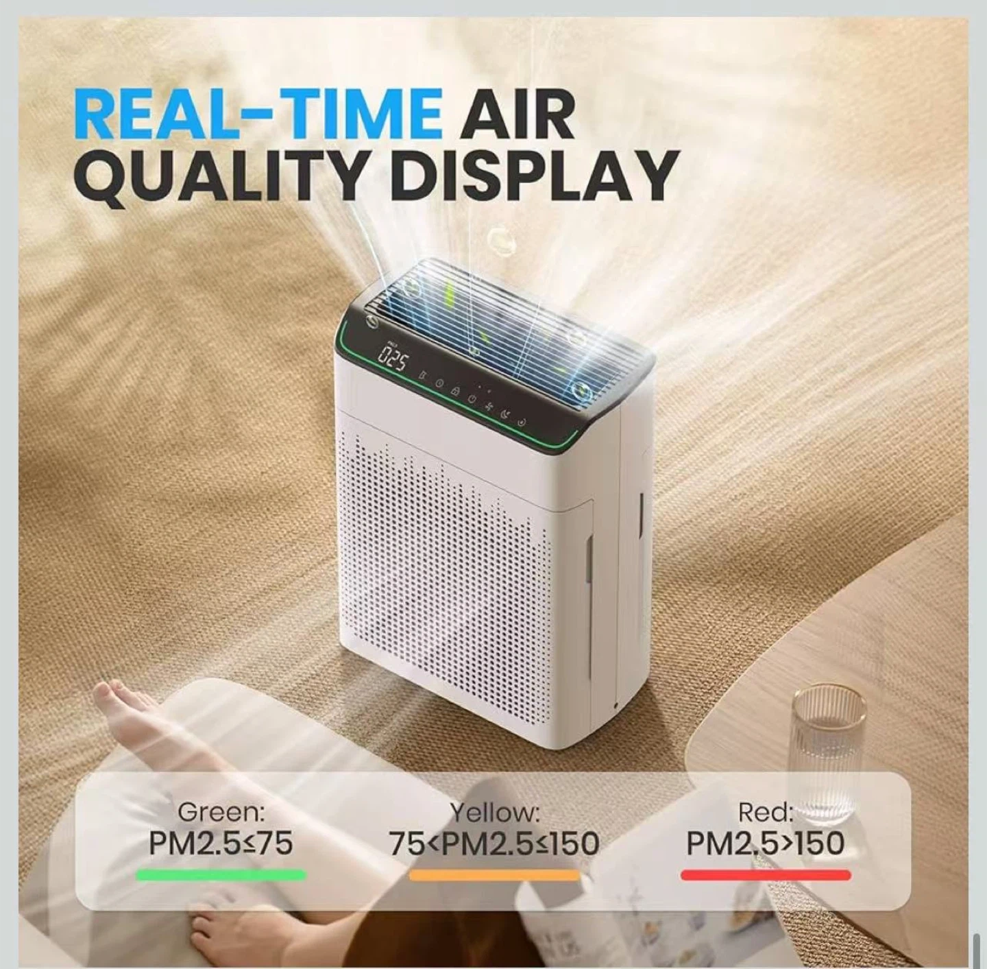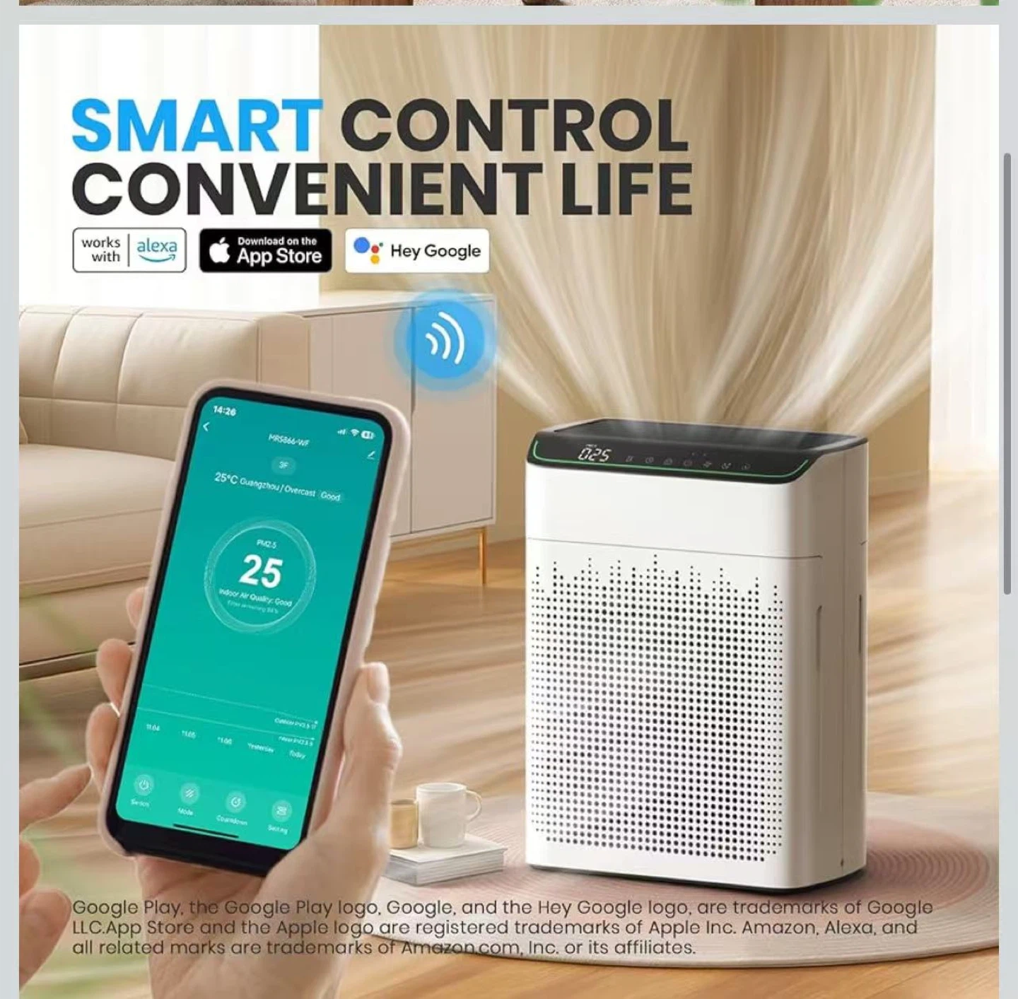 Air Purifiers for Home Large Room Up to 1690 ft² Double-sided Air Inlet Smart WiFi Alexa Compatible PM 2.5 Air Quality Monitor for Smoke and Odor 23dB Quiet 1 Pack+2 Pack HEPA Filters White