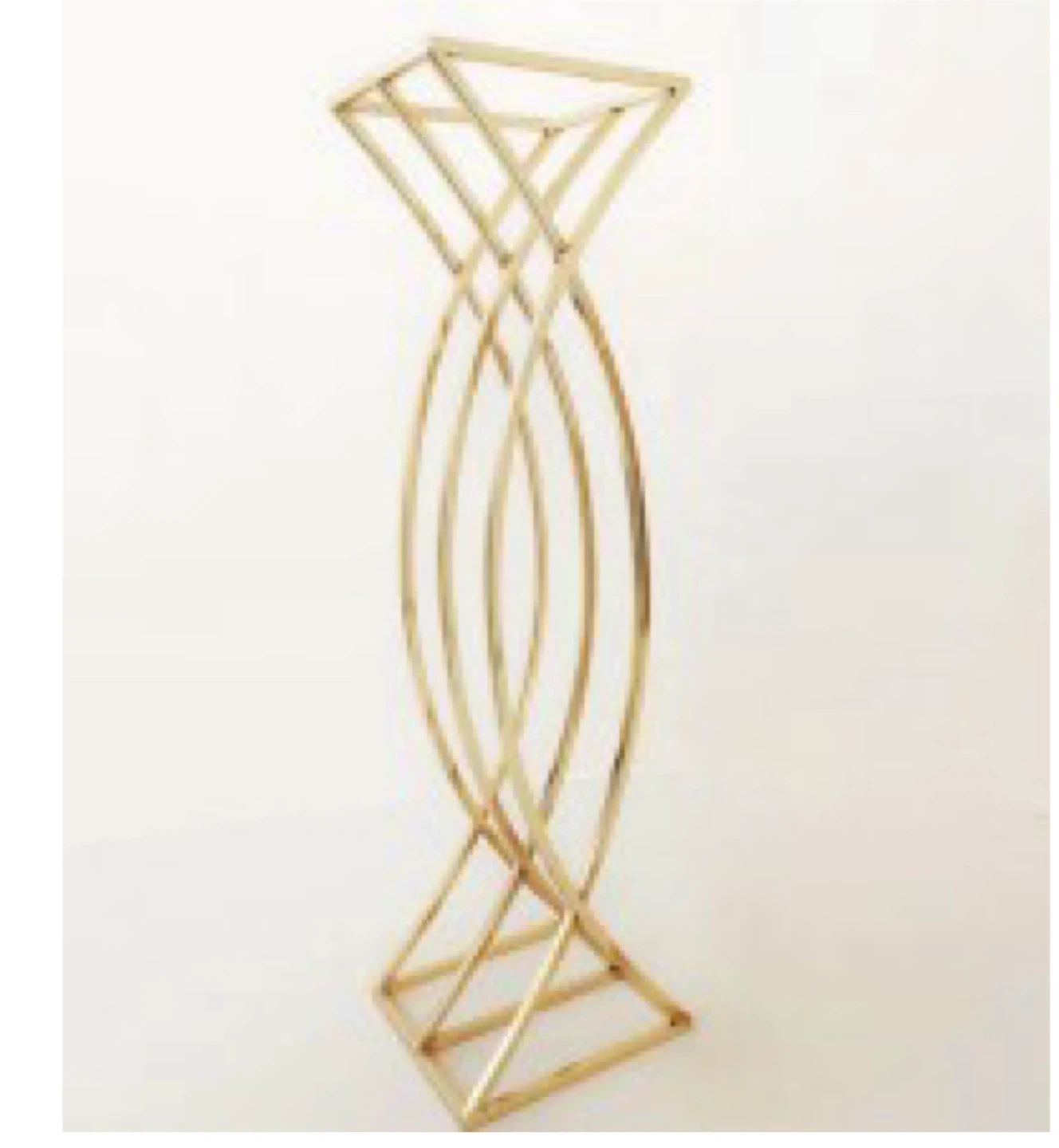 60This is a gold metal flower stand 80cm tall. It's a beautiful piece that can add elegance to any event or home decor Qty. 6