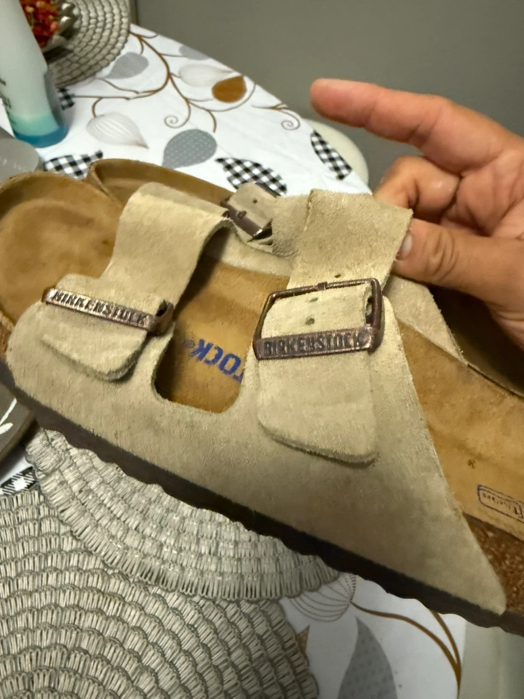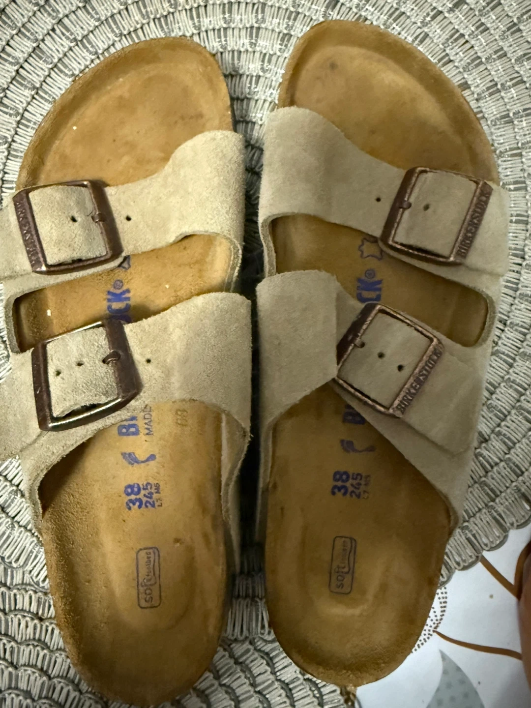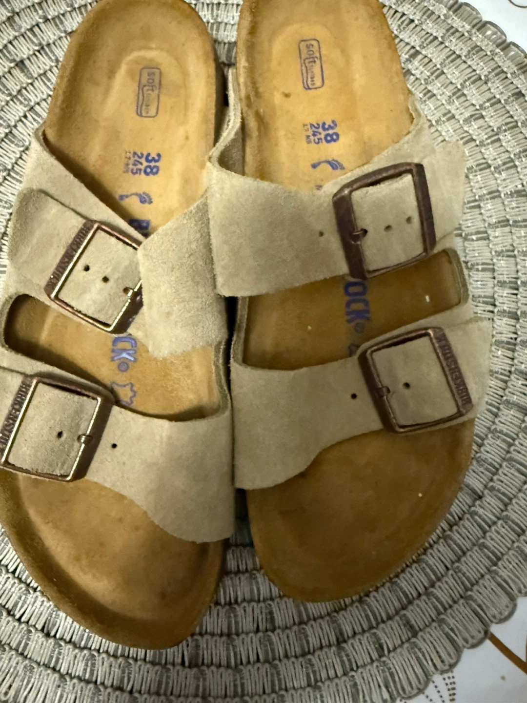 Selling a pair of Birkenstock Arizona sandals in size 38! These have the soft footbed and are made in Germany. They show some signs of wear but are still in good condition for everyday use
