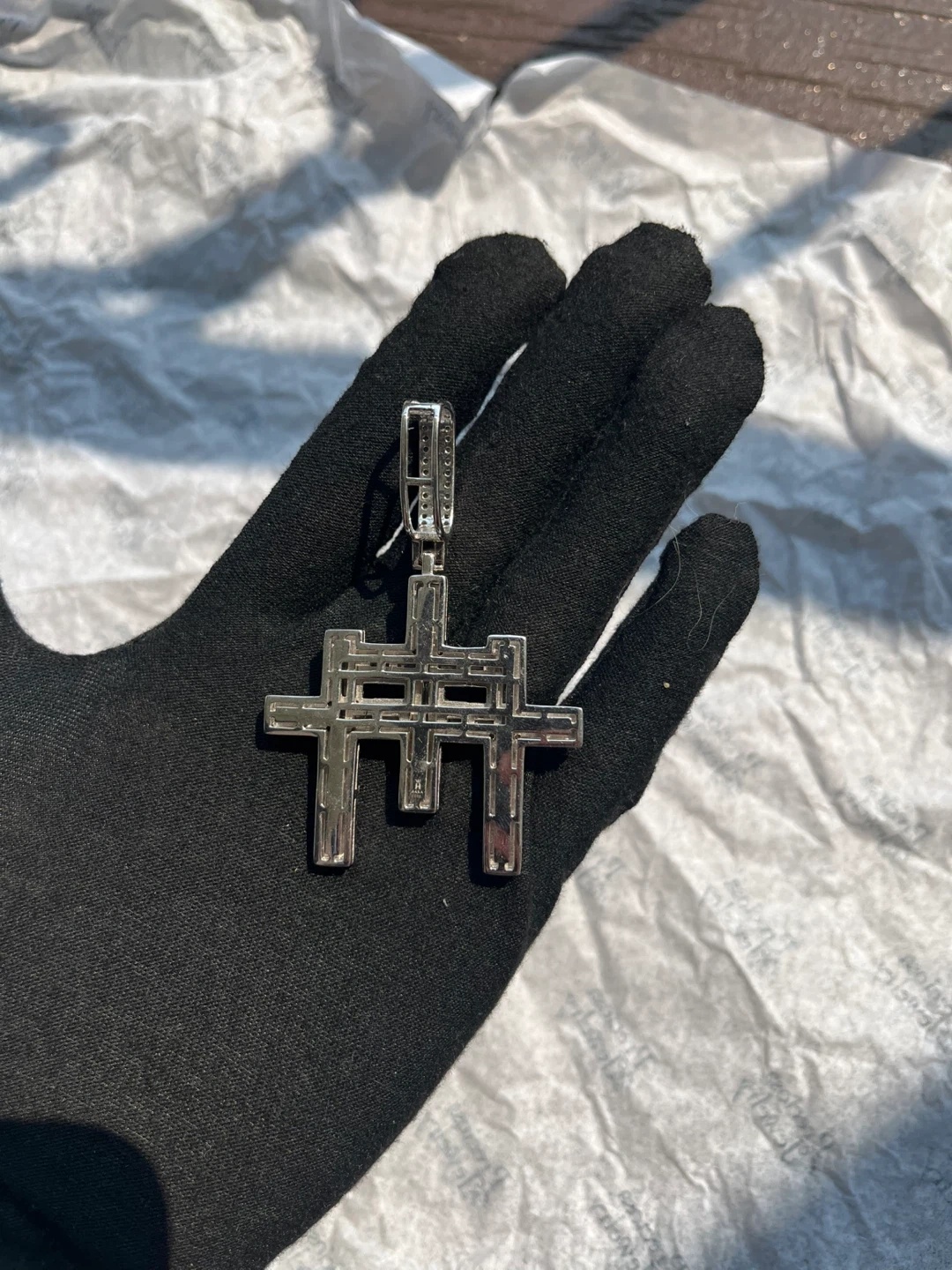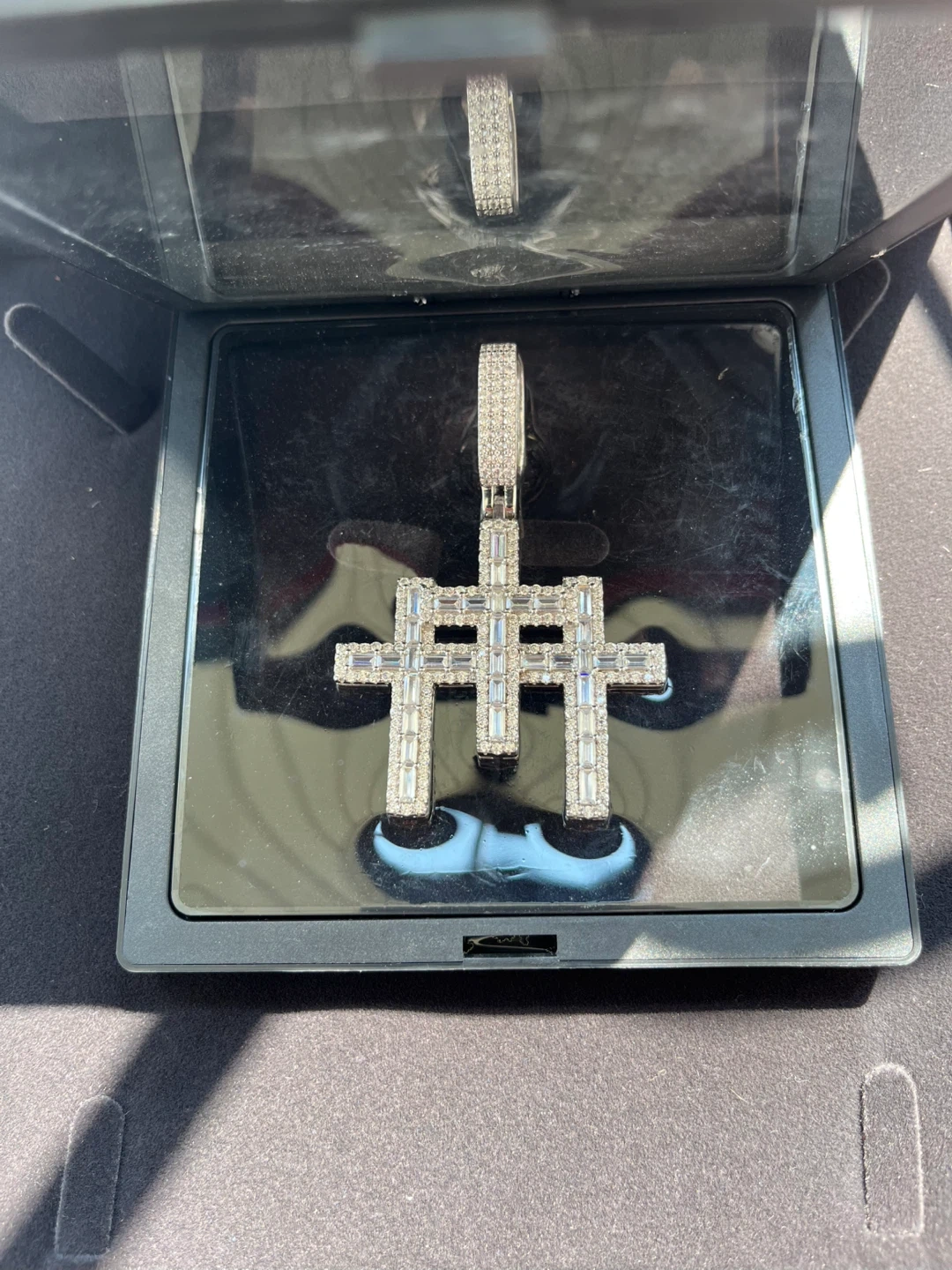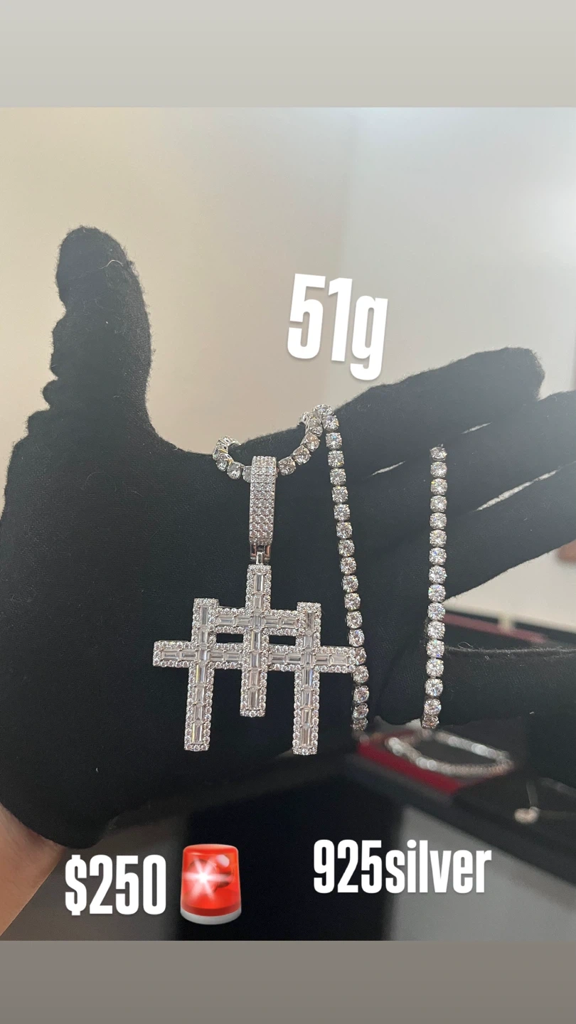 Selling a cross pendant necklace made of 925 silver. It weighs 51g and comes in a box. Originally 20 inch - 22 inch tennis available Rhodium plated 925 sterling silver