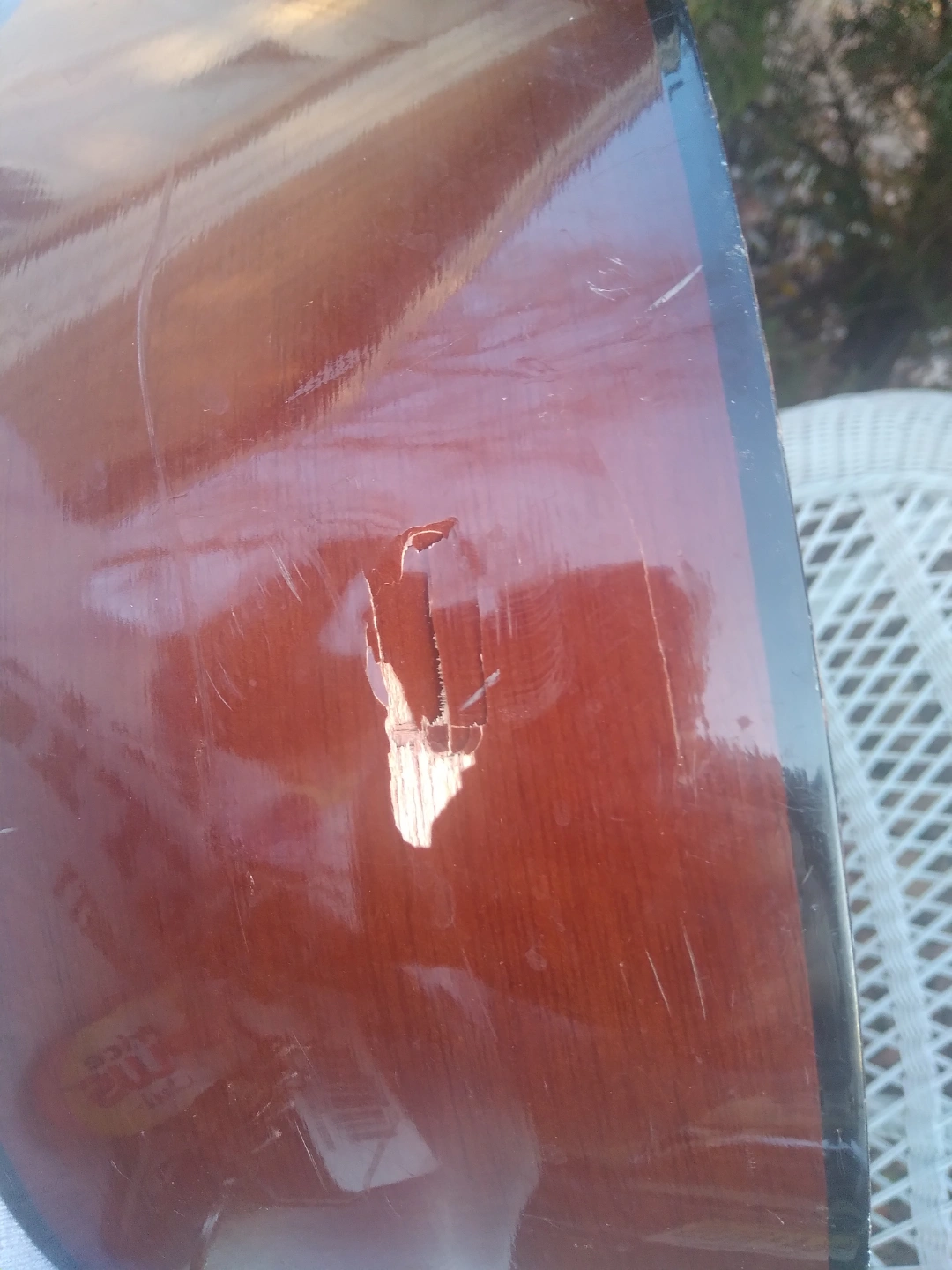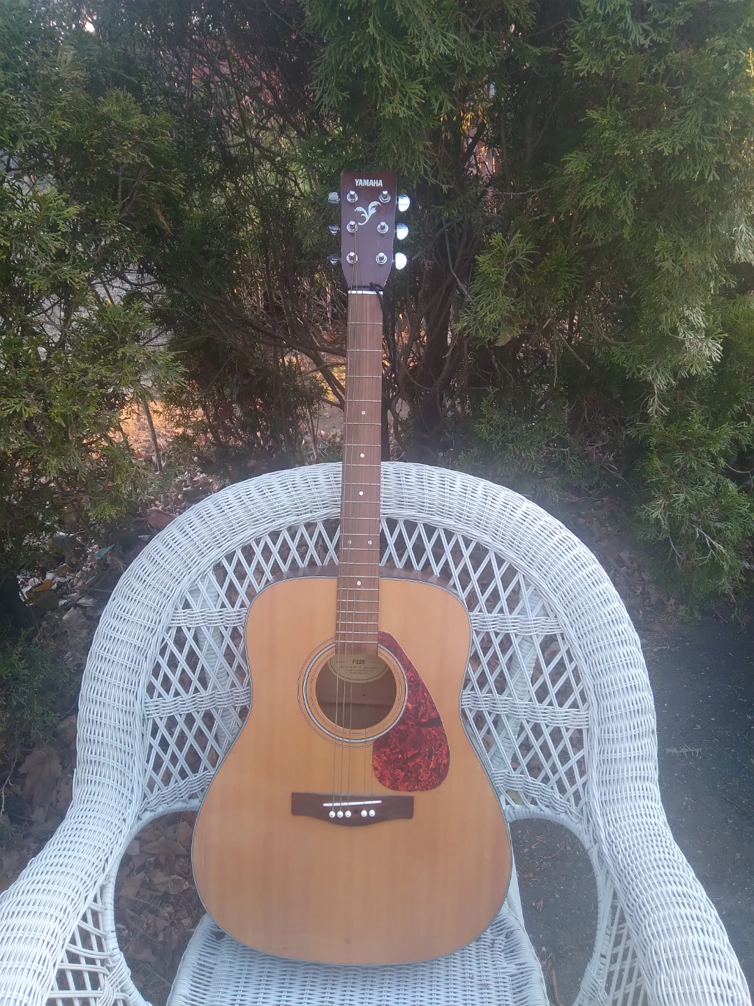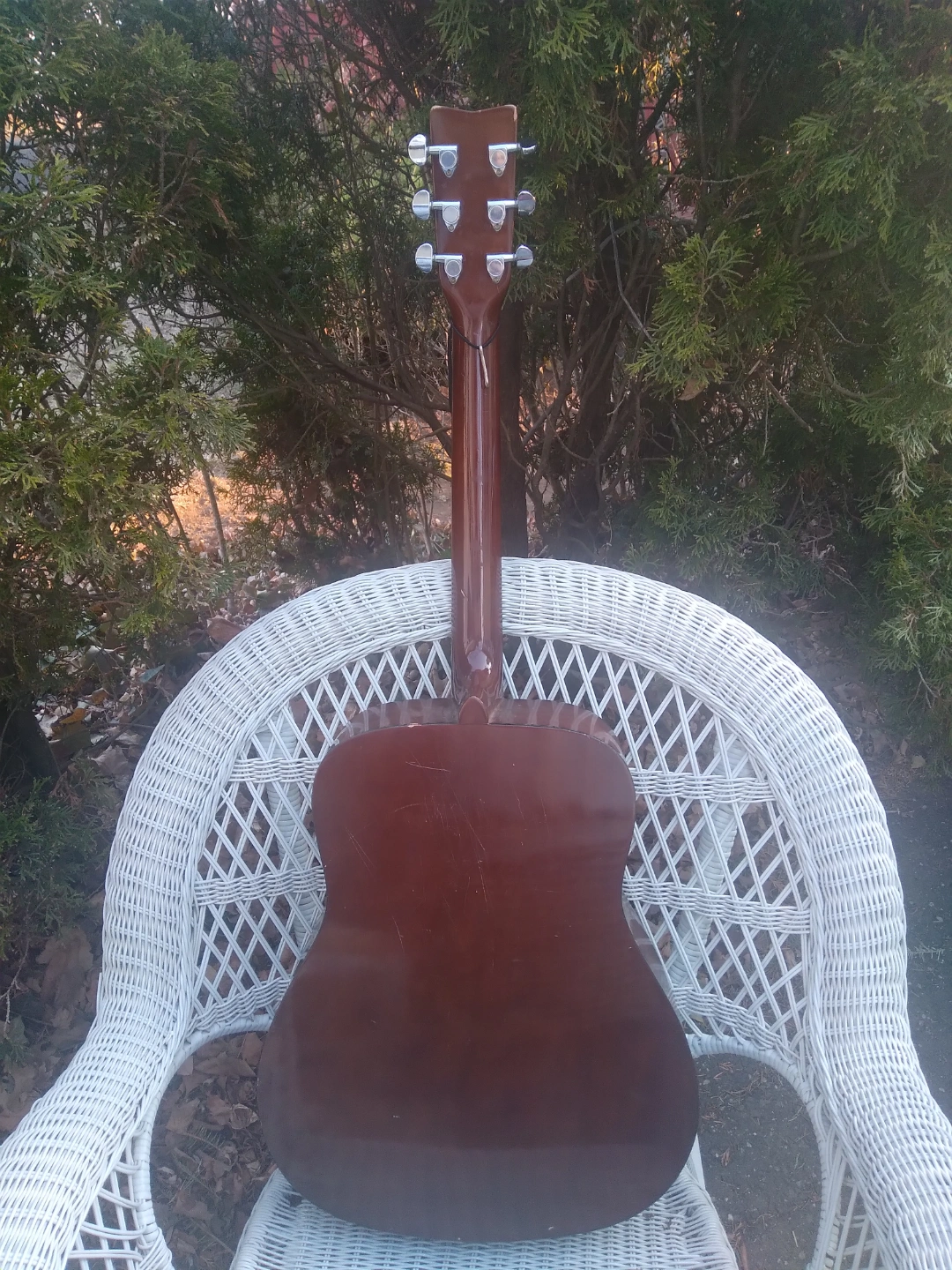 Yamaha acoustic guitar. Shows some scratches and chips in the finish. Beautiful sound. Anyone interested in it can text me.
