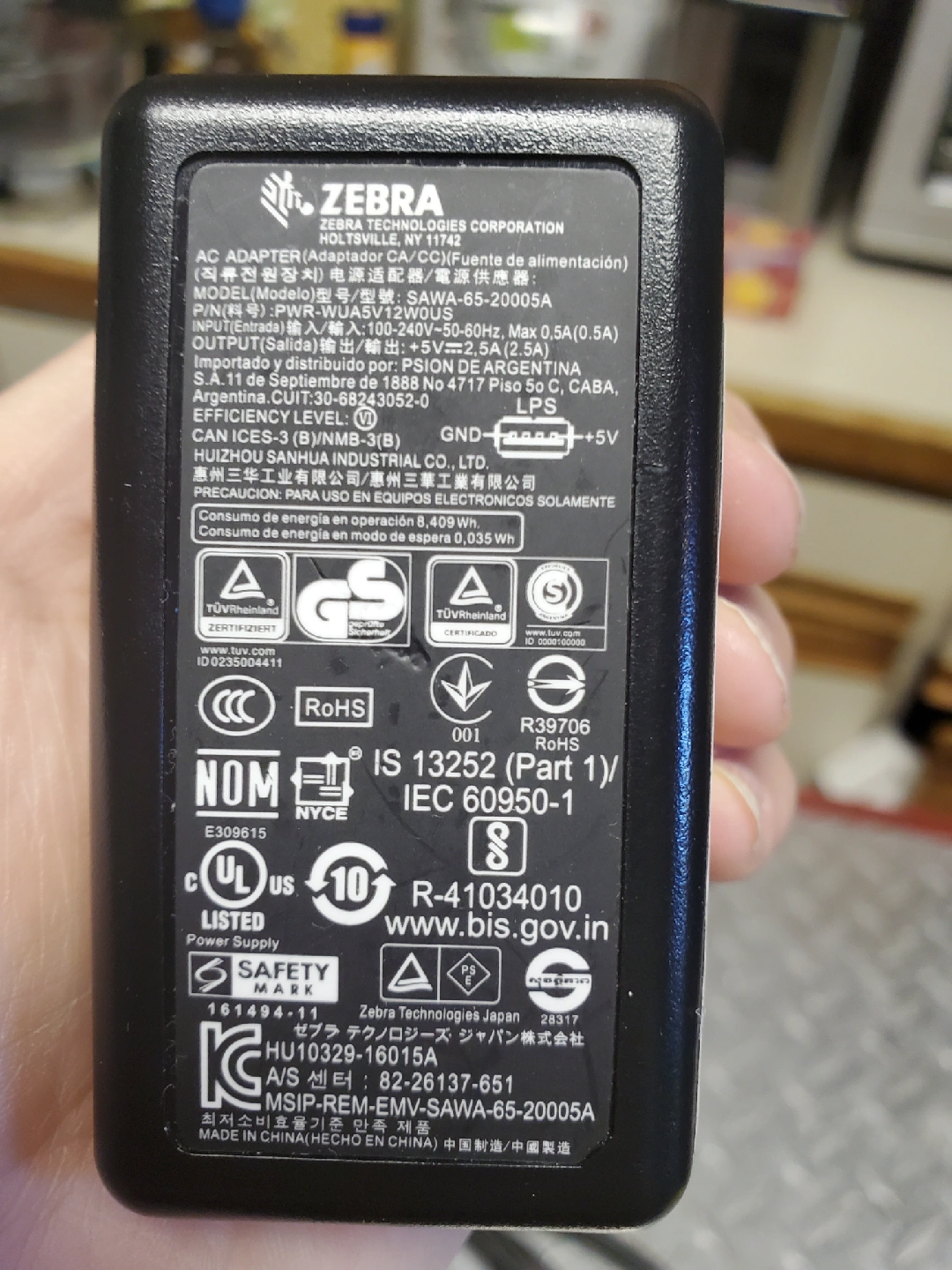 Selling 3 Zebra AC adapter power supply with 3 type c 3ft cords. It's in good condition and ready to use! Included are the power adapter and cables as pictured. This is an AC Adapter / Power Supply. Input: 100-240V~50-60Hz, Max 0.5A(0.5A), Output: +5V == 2.5A (2,5A)