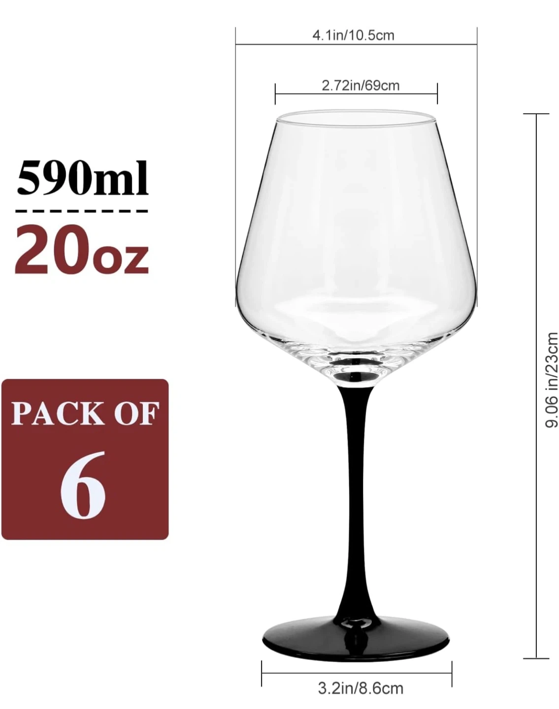 Red Wine Glasses Set of 6, 20 oz Large Clear Burgundy Wine Glasses With Long Stem, Premium Crystal Wine Glass