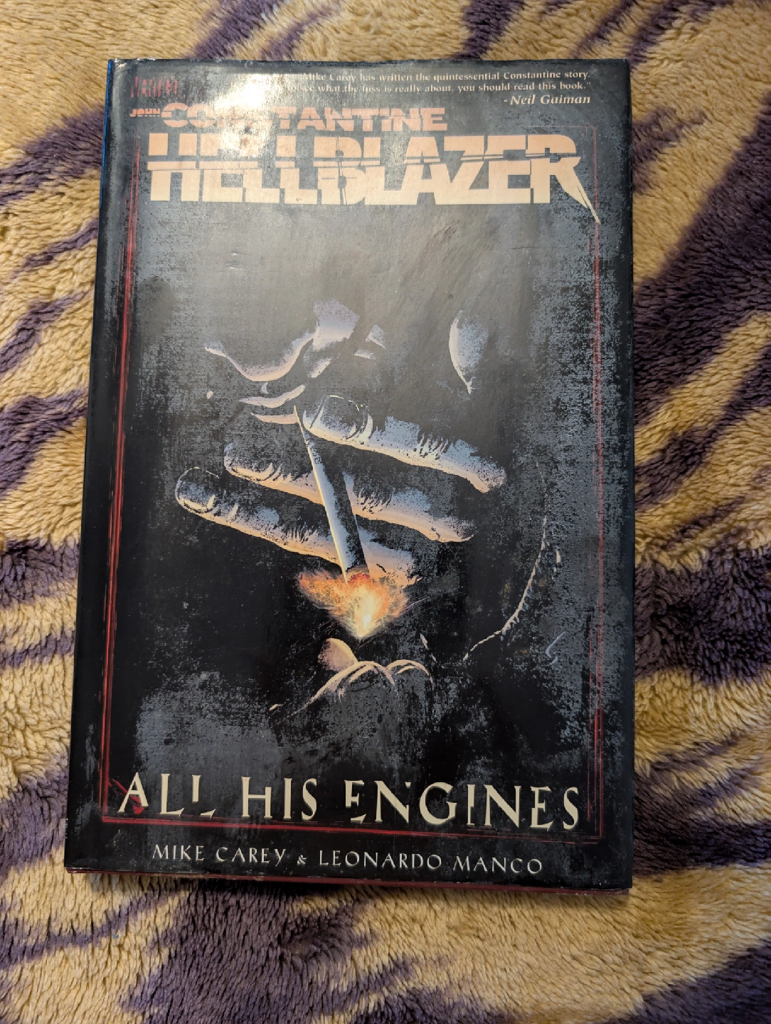 Selling a hardcover edition of Hellblazer: All His Engines, written by Mike Carey and illustrated by Leonardo Manco! This graphic novel is part of the Constantine series and is suggested for mature readers. It's a definite tale of horror with monsters, every bit as terrible as the one he's pursuing.2004 first edition Vertigo Comics, very good condition