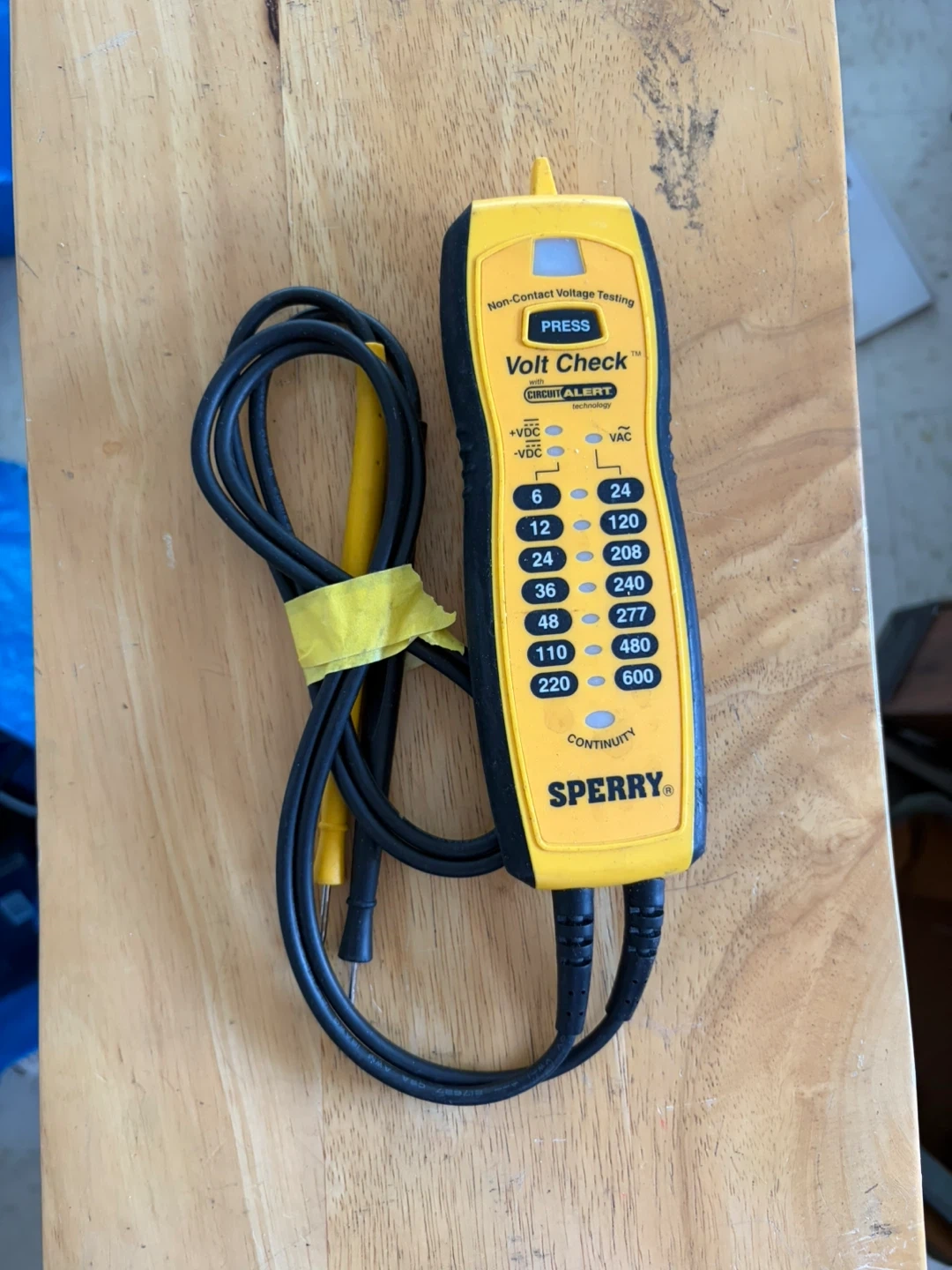 Selling a Sperry Volt Check non-contact voltage tester. It has a circuit alert technology and can test for voltage between 6 and 600 VAC. It also has a continuity testing function.