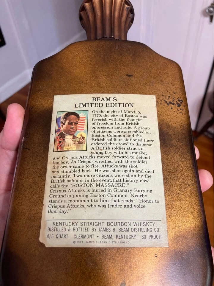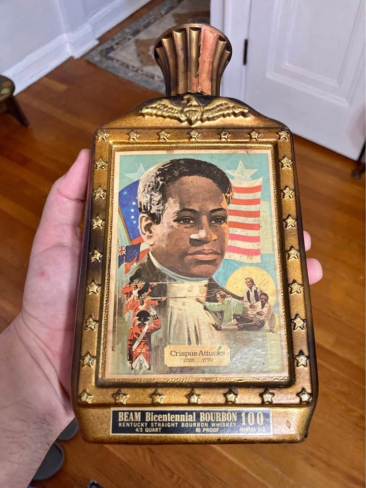 65Vintage Jim Beam Bicentennial Crispus Attucks Decanter great to add to collection. Pickup only in Jefferson / portage park area