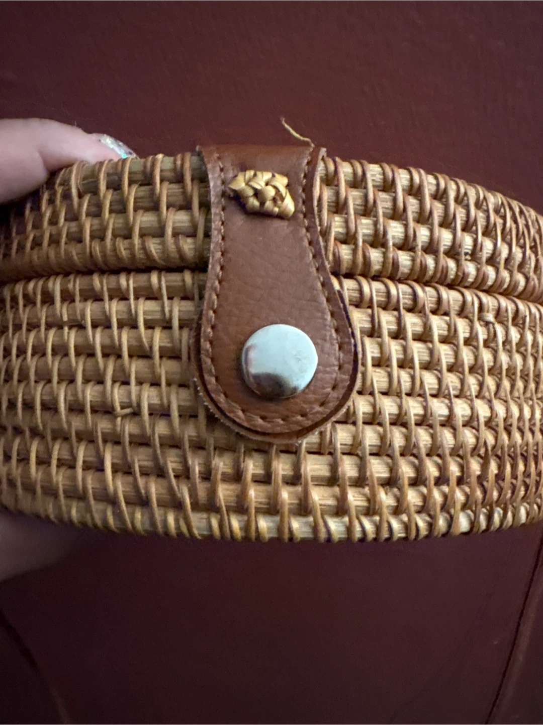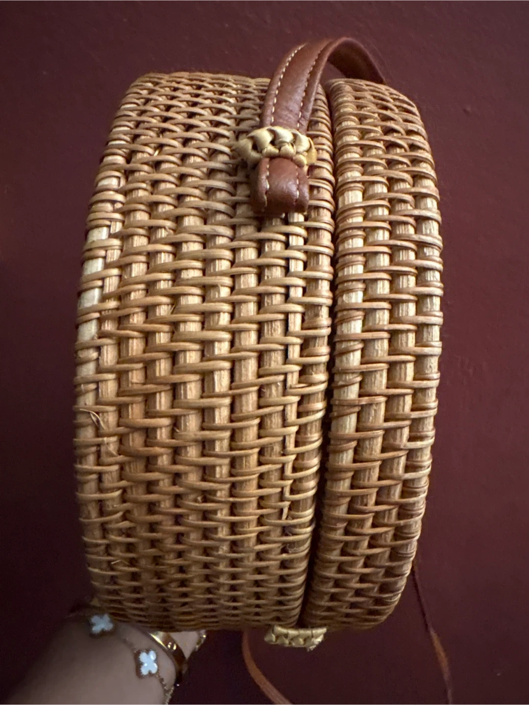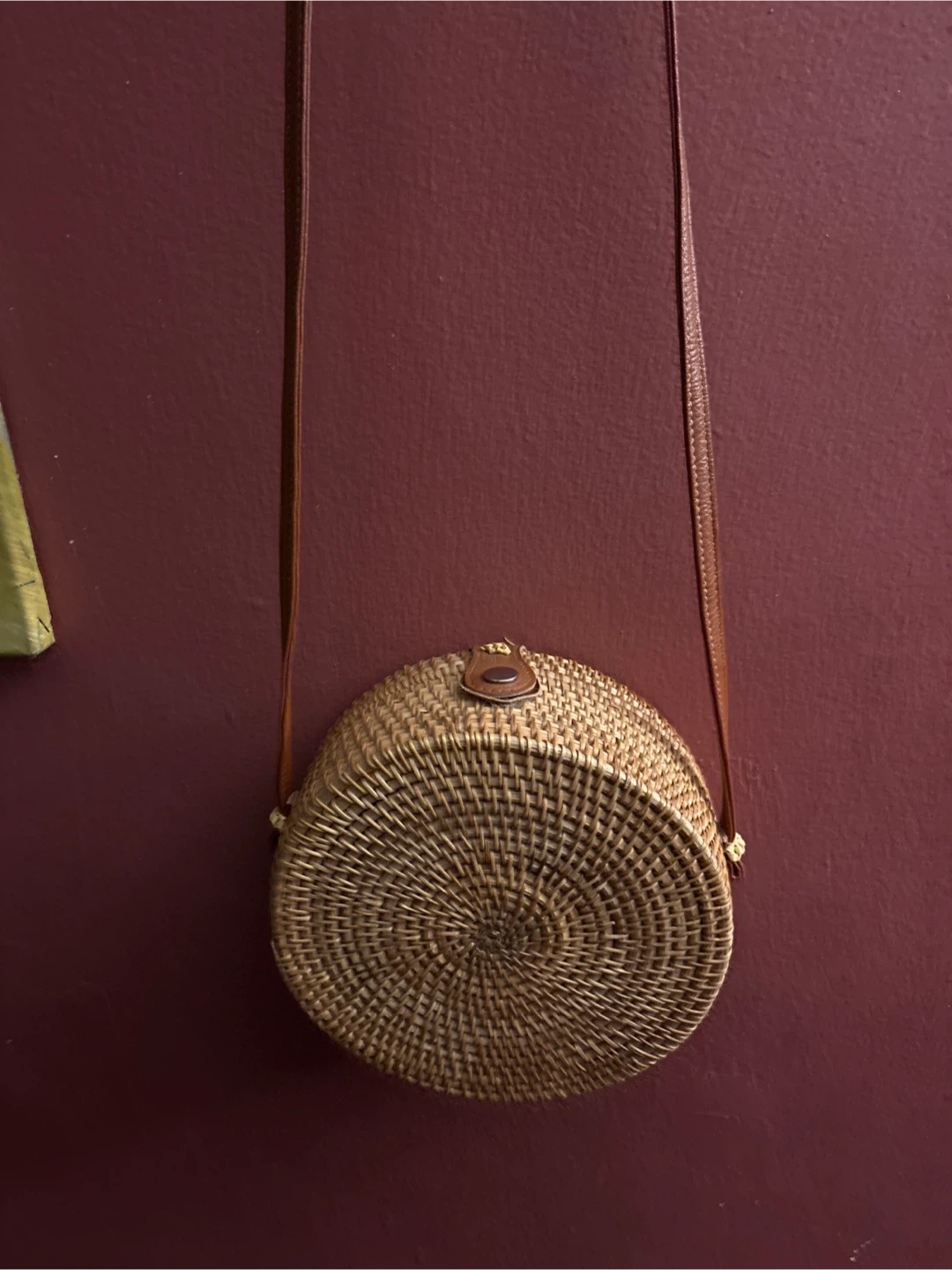 1000+This is a cute woven rattan round crossbody bag! It's a unique accessory that will add a natural and stylish touch to any outfit. The interior is lined with a floral pattern fabric. New