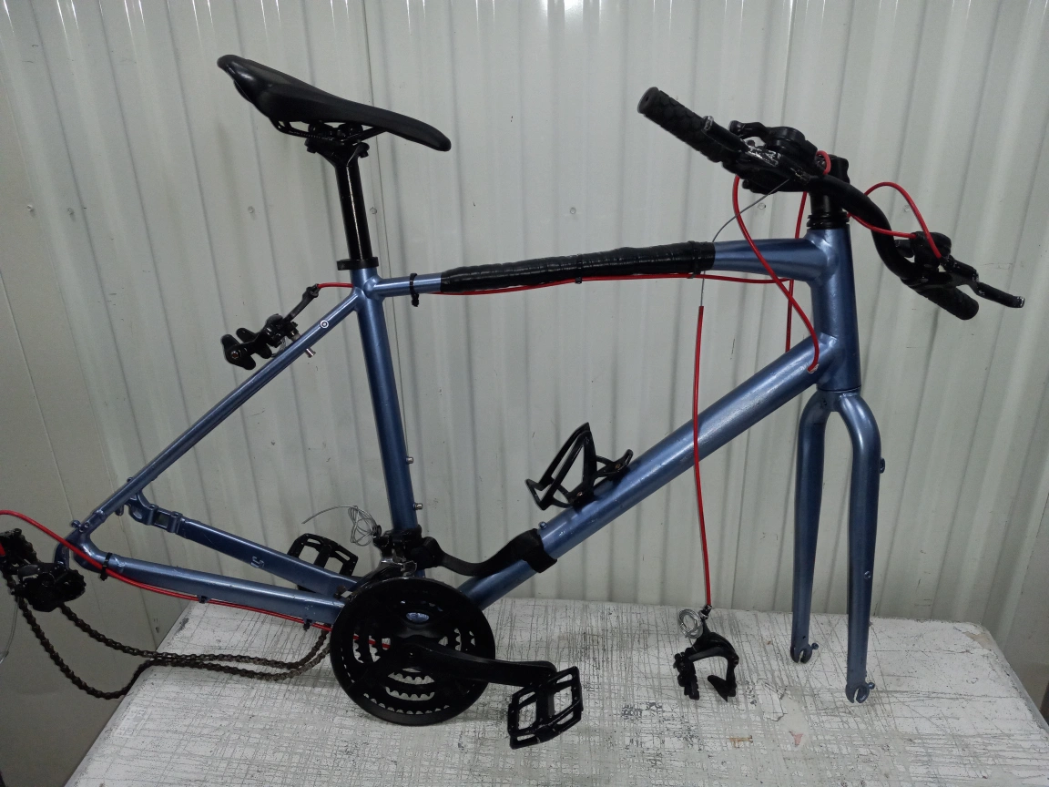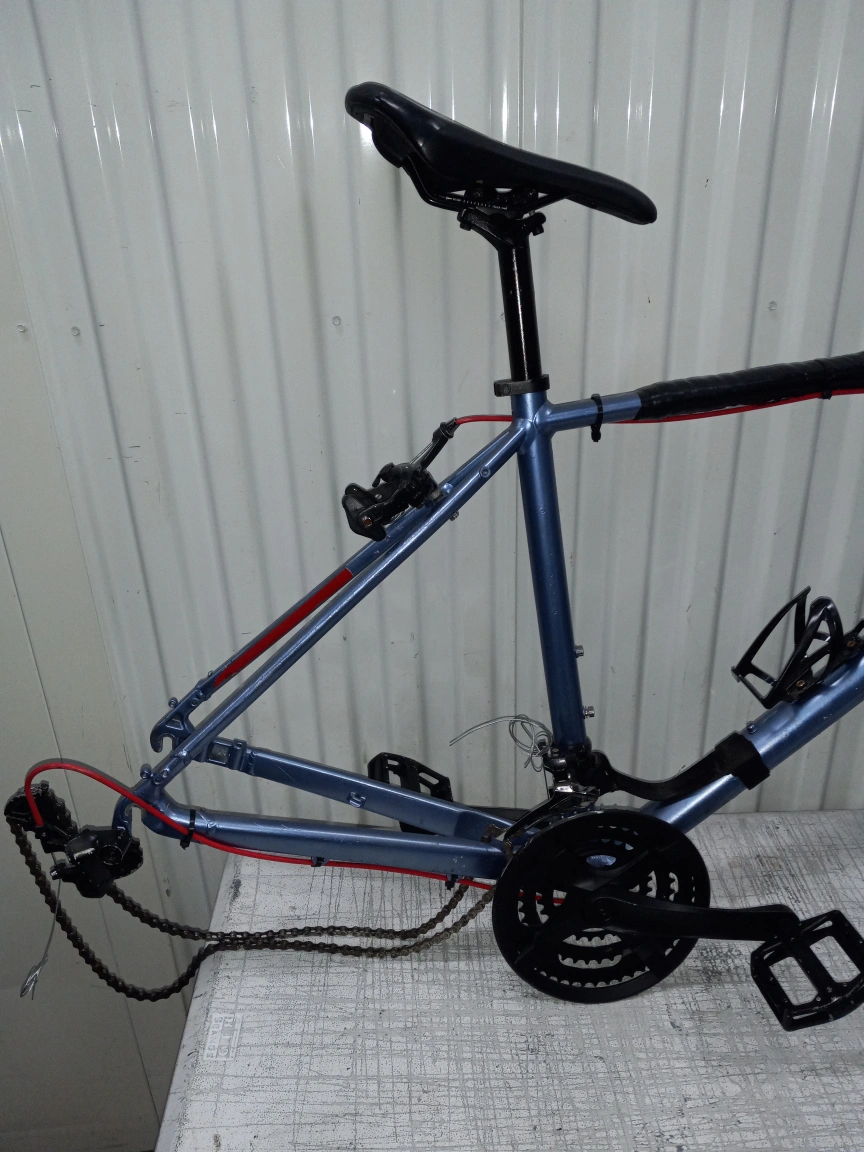 Selling a bike frame in blue. It's missing some parts, as you can see in the pictures