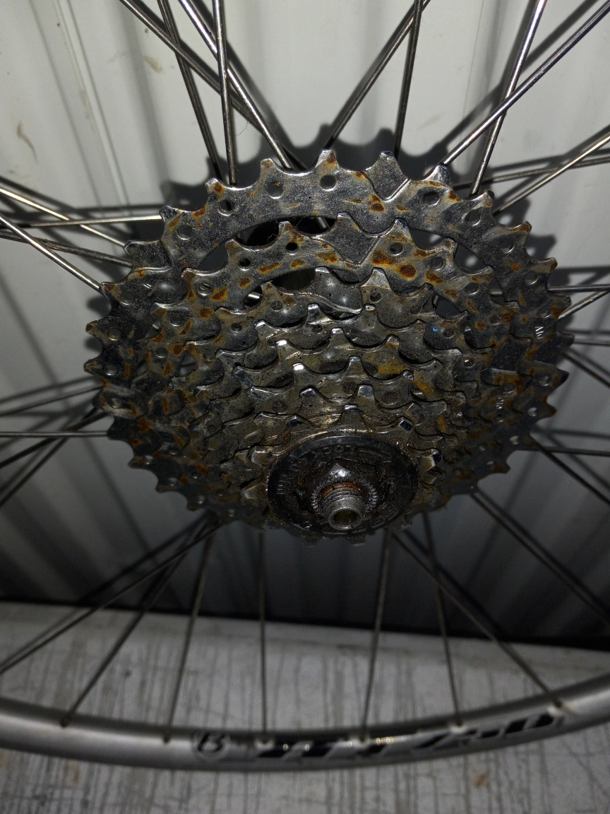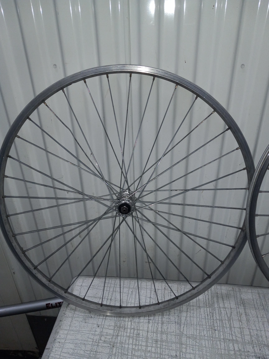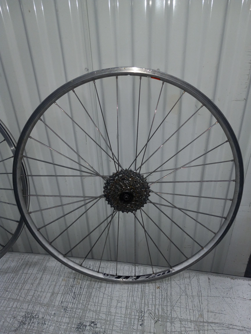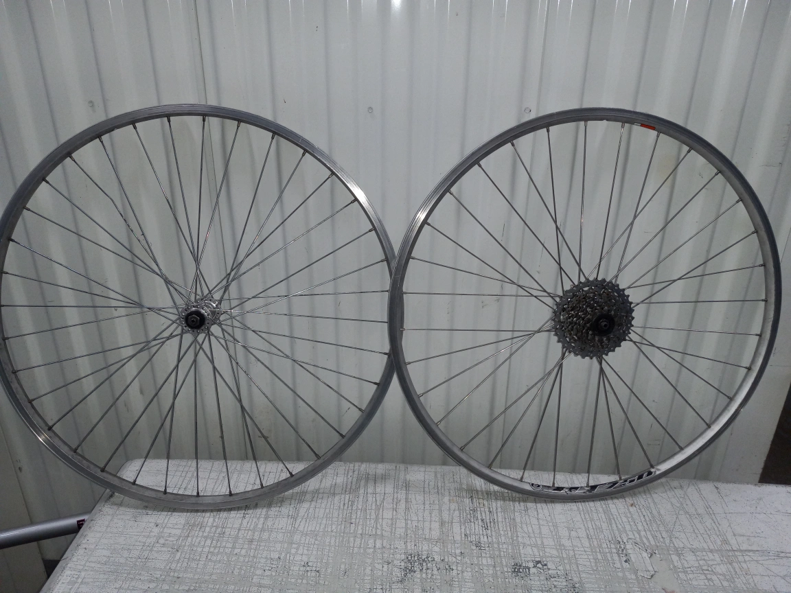 15Selling a pair of used bicycle wheels. They show signs of wear and could use some TLC 27" 8 speed hybrid/mtn bike rims.