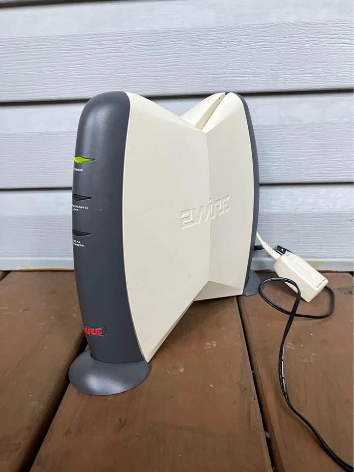 Home portal modem comes with power cord and dual port phone line cord. Measures 8 x 10. Unit powers on with lights as seen in the pictures. Specs are as follows: Brand / Manufacturer 2Wire Model Name HomePortal 1000SW RAM Capacity 32 MiB Flash Memory Capacity 16 MiB WiFi Standard 11mbps (b) WiFi bands 2.4GHz Ethernet Ports 1 x 100mbps port Subnet Mask [hidden information] From a smoke and pet free home. Check out in person before purchasing. Thanks for looking.