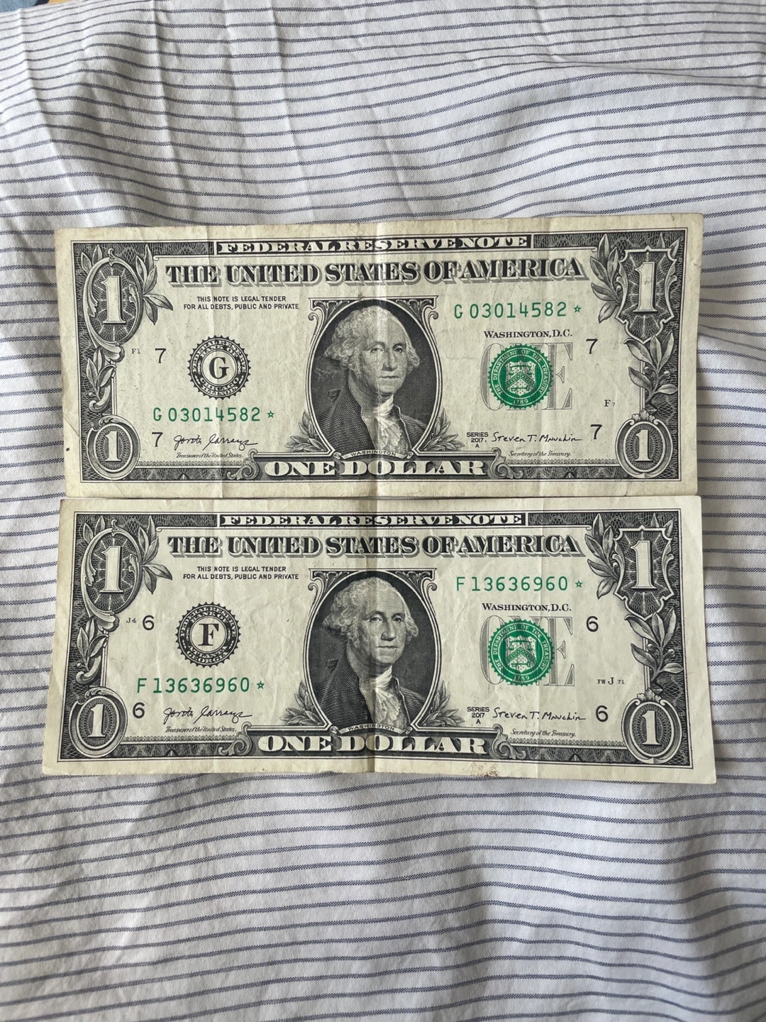 Fancy serial number $1 US bill