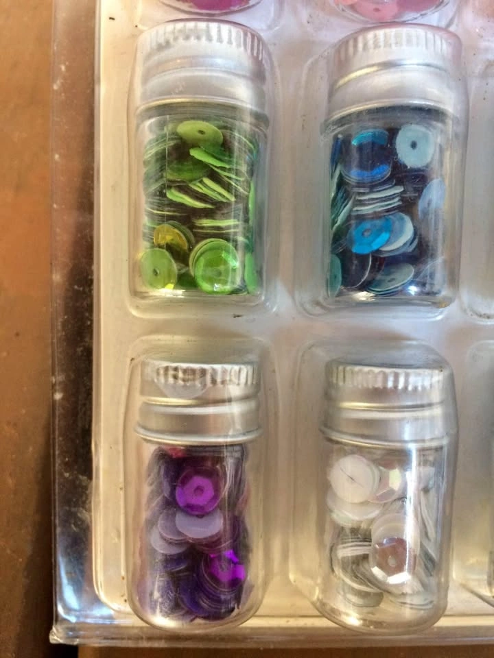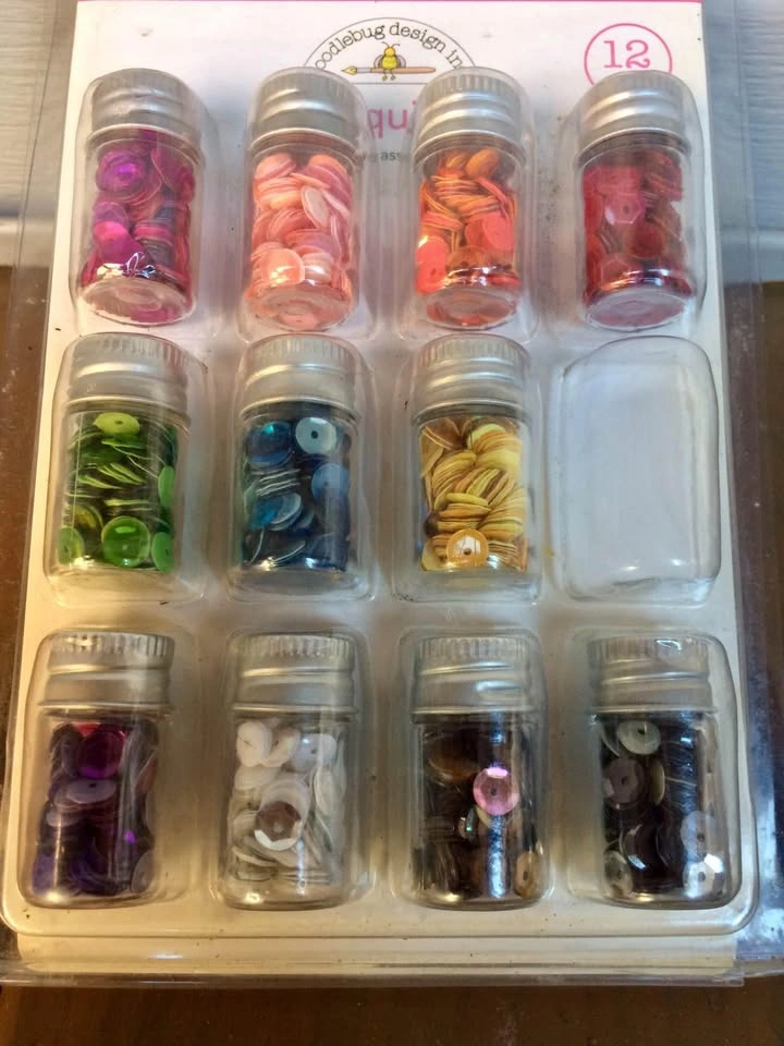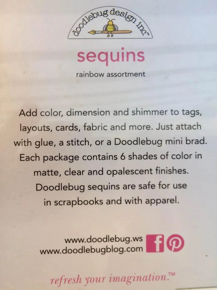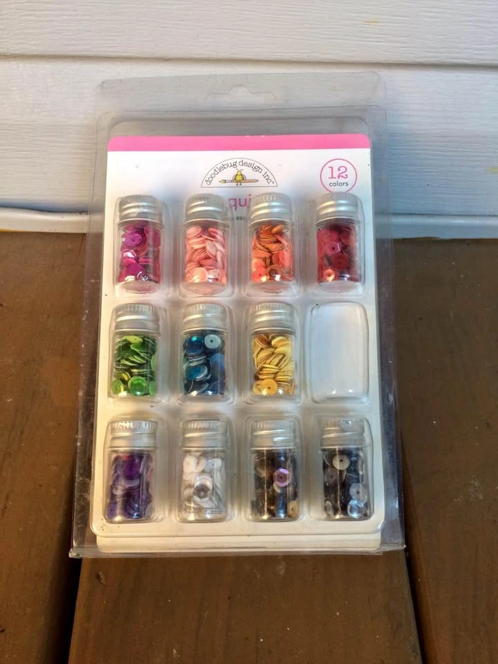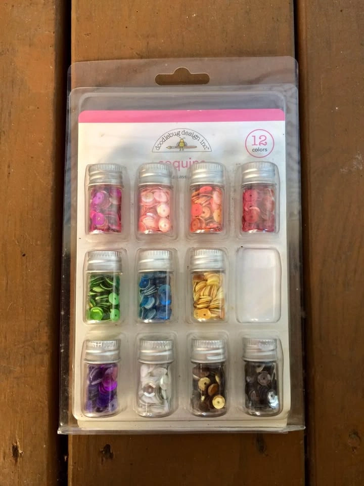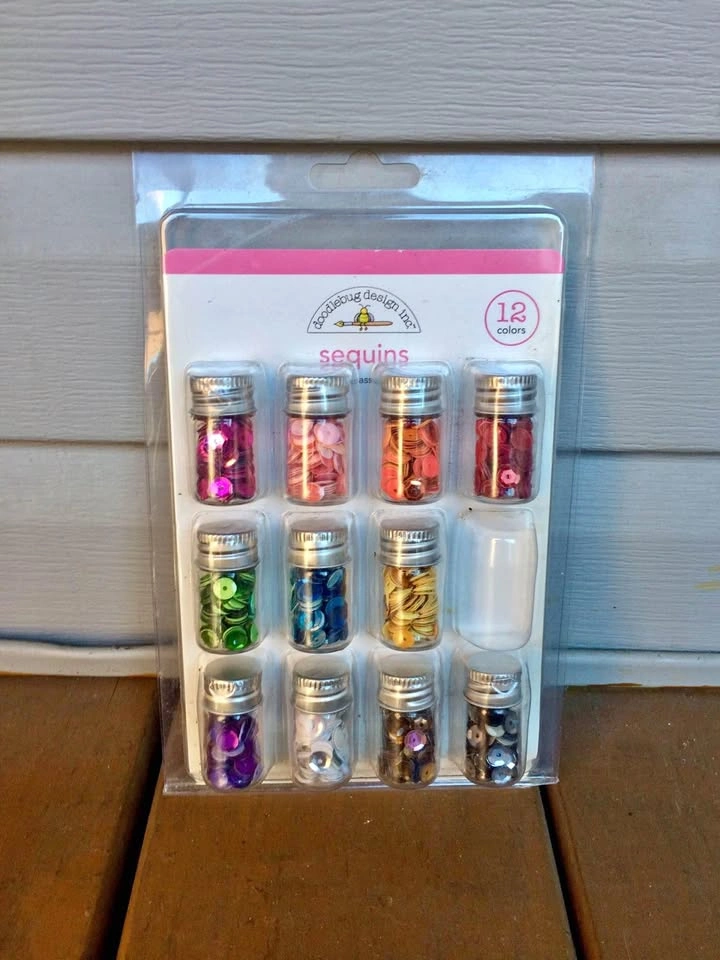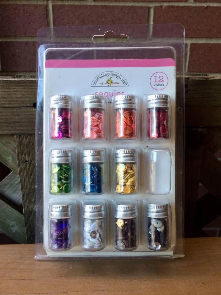 Doodlebug Sequins Set Of 11 - Brand New This was a set of 12 when purchased, but the light blue ones were used on a project. All other colors are brand new and never opened. Original purchase price was 15.99. Add color, dimension and shimmer to your projects. These can be used for scrapbooks or apparel. They attach with glue, stitches or mini brads. From a smoke and pet free home. Check out in person before purchasing. Thanks for looking