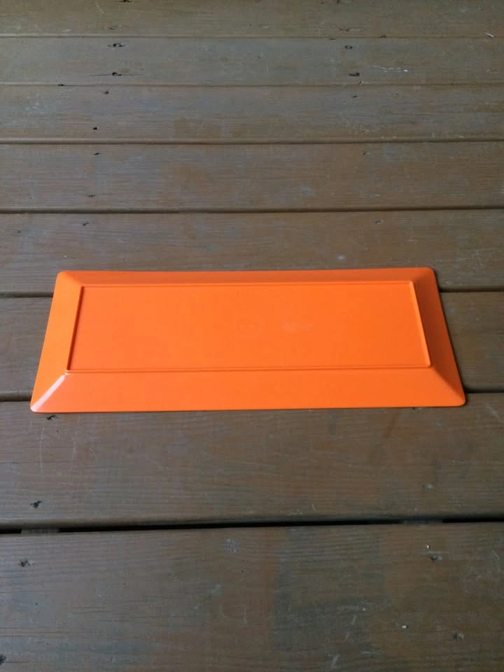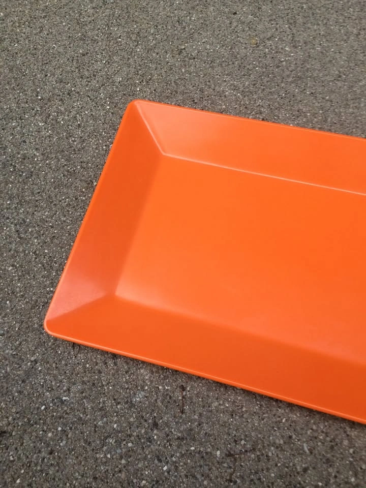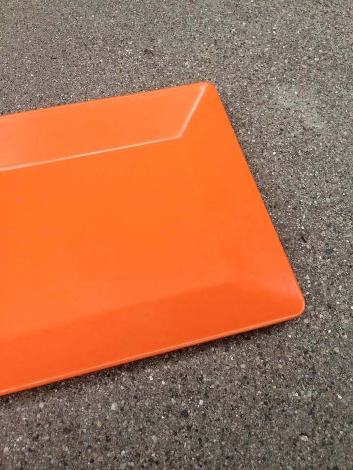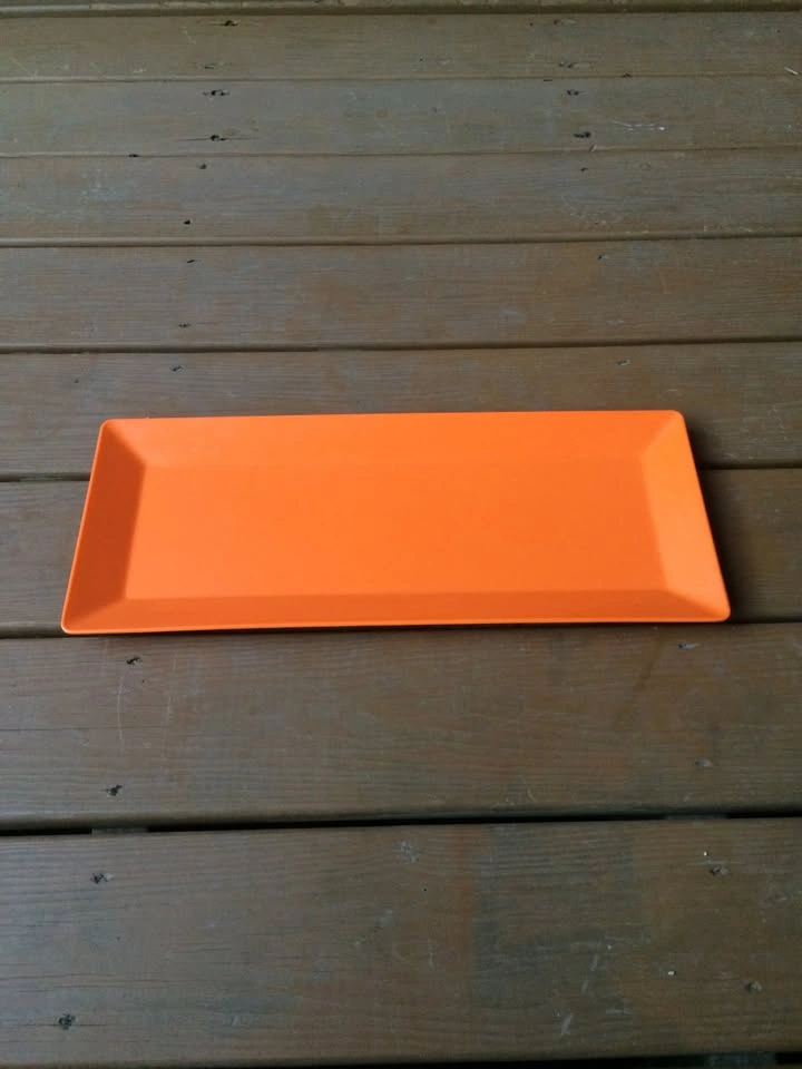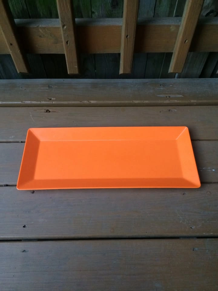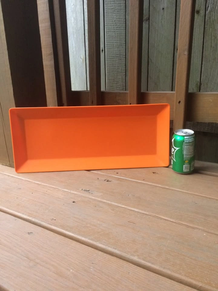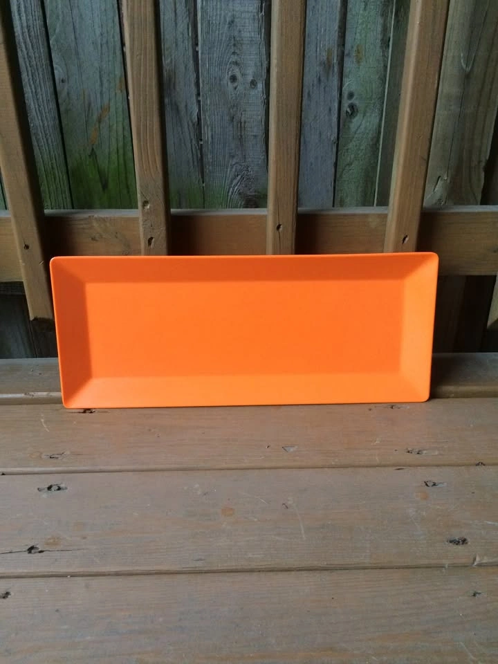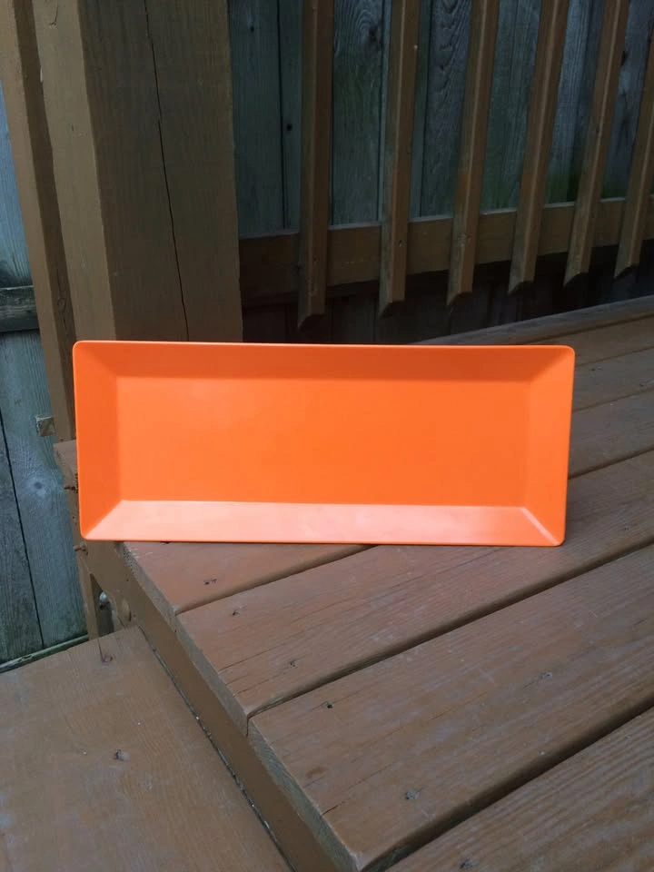 Tray is 1” tall in excellent condition with no chips or cracks. Festive color works for almost any setting or season. Great for appetizers, sushi, veggies with dip, desserts etc. Could also be used as a decor item or organizational aid. Dishwasher safe on top rack. From a smoke and pet free home. Check out in person before purchasing. Thanks for looking.