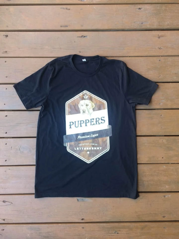 Black Puppers Large tee was barely worn and is in excellent condition. When laid flat, shirt measures 30” from very top to bottom and 20” across. 100% cotton construction. From a smoke and pet free home. Check out in person before purchasing. Thank for looking.