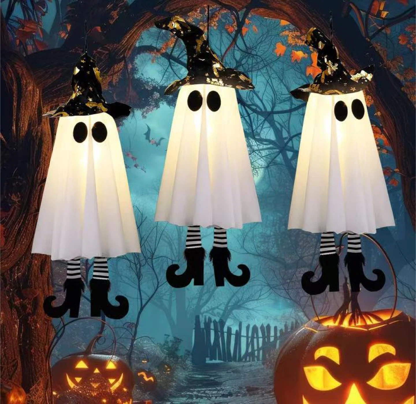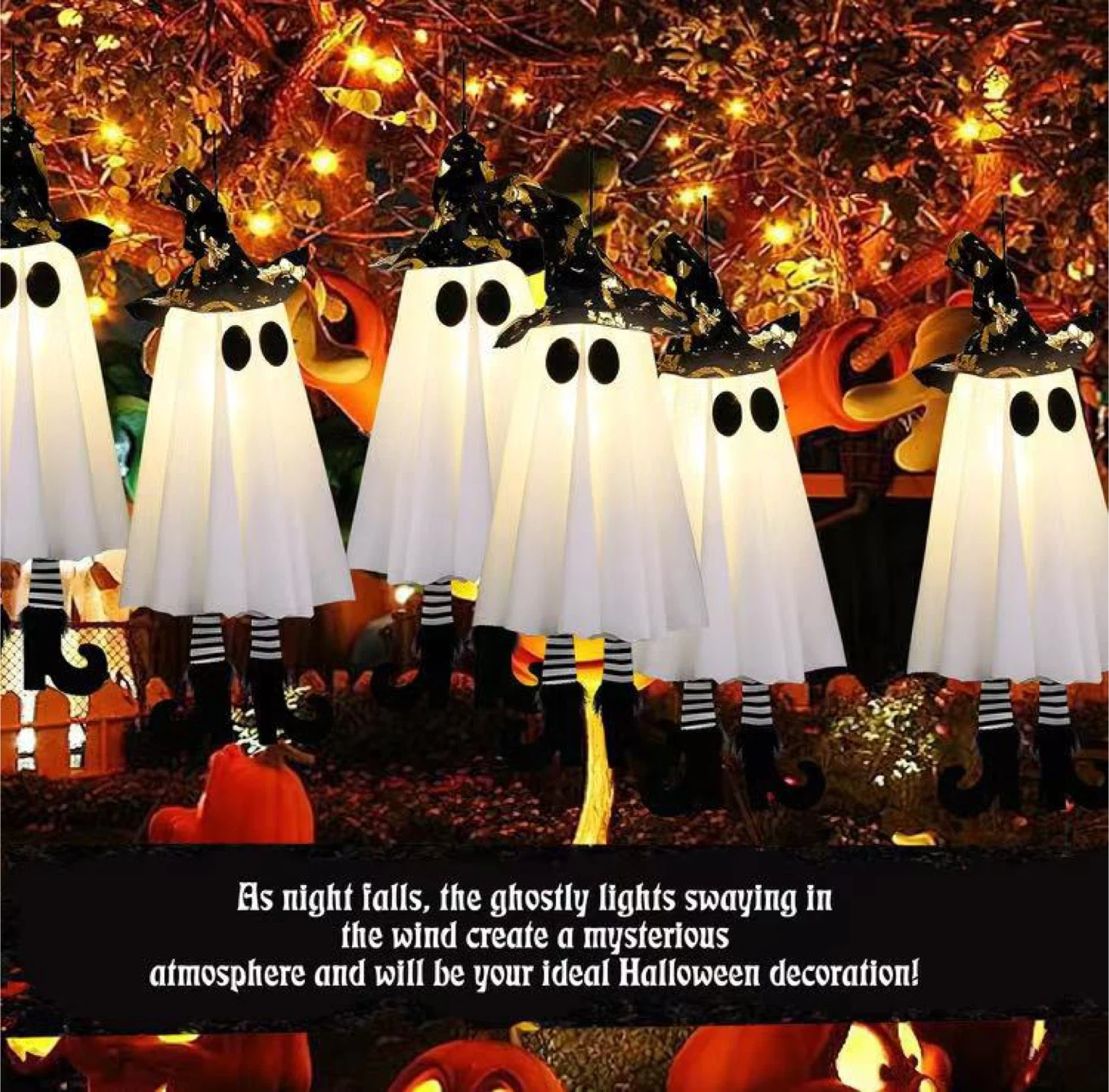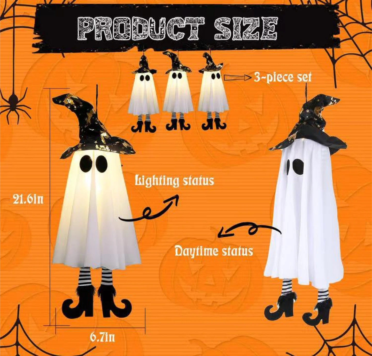 Halloween Decorations Outdoor,Set of 3 Halloween Hanging Spirits with Cone Caps, Swaying Glow Decor Lights for Yard Patio Lawn Garden Party Porch Decor