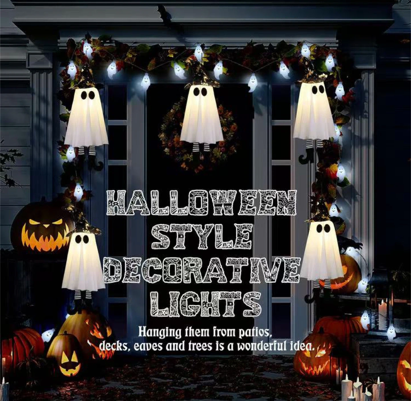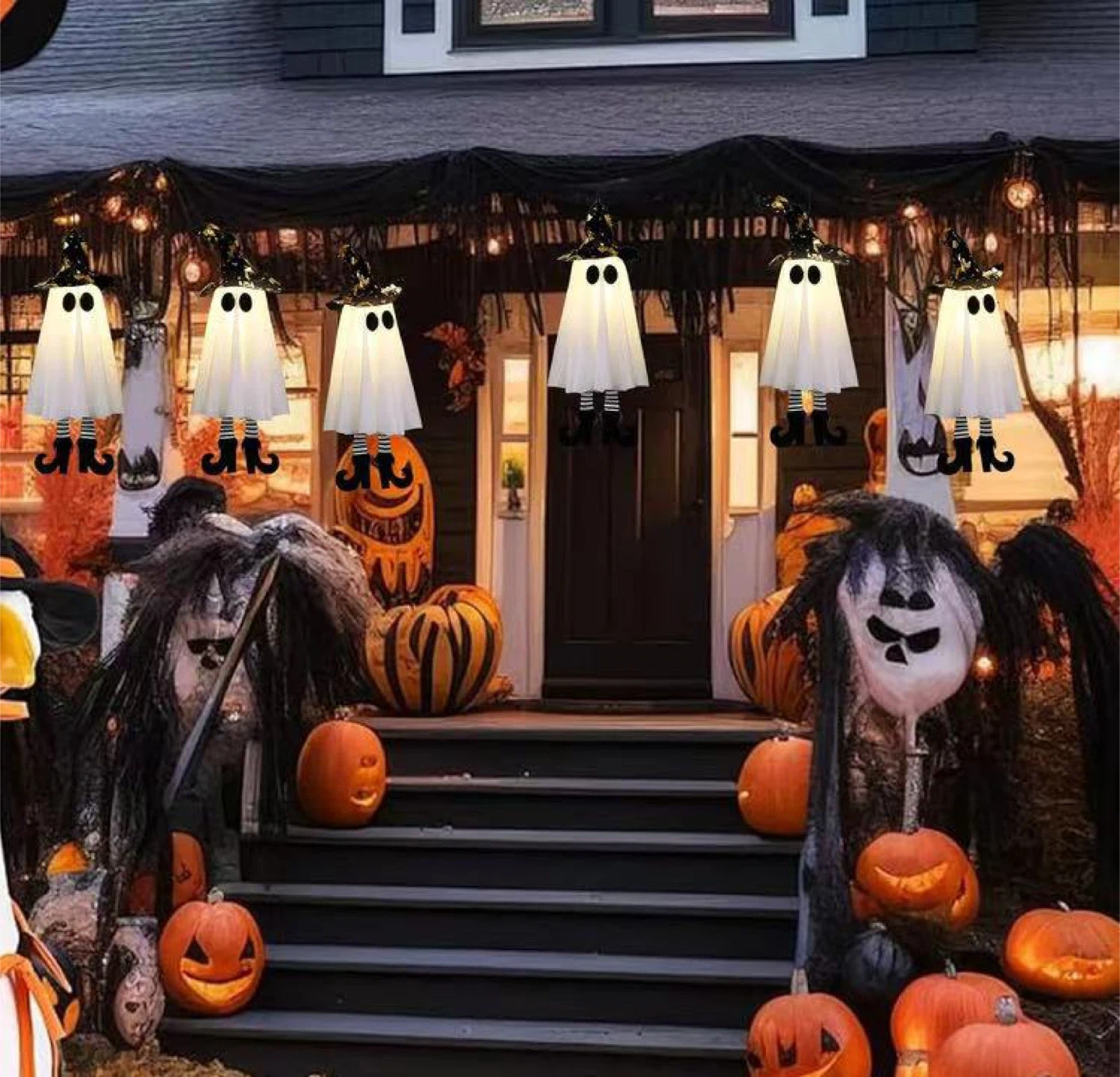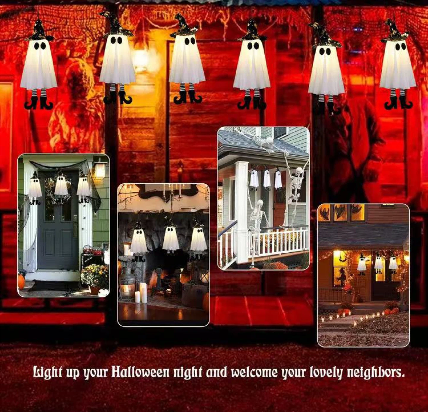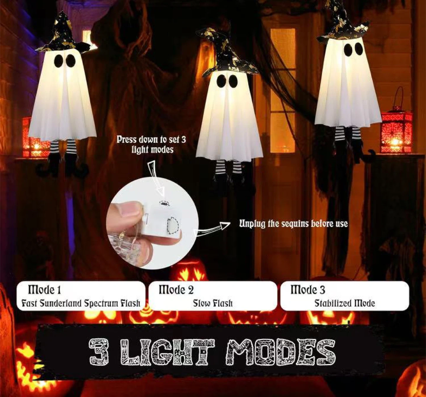 Halloween Decorations Outdoor,Set of 3 Halloween Hanging Spirits with Cone Caps, Swaying Glow Decor Lights for Yard Patio Lawn Garden Party Porch Decor