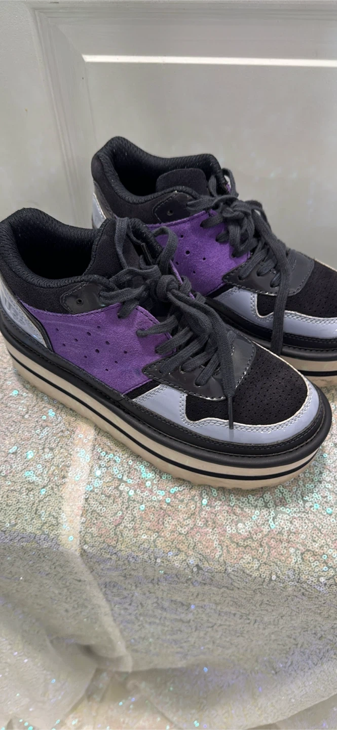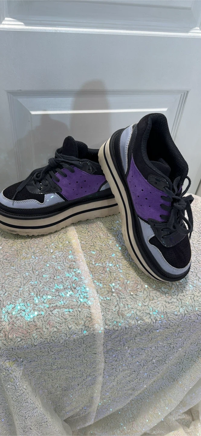 25Cute UGG platform sneakers in black and purple! These are in great shape and ready for a new home