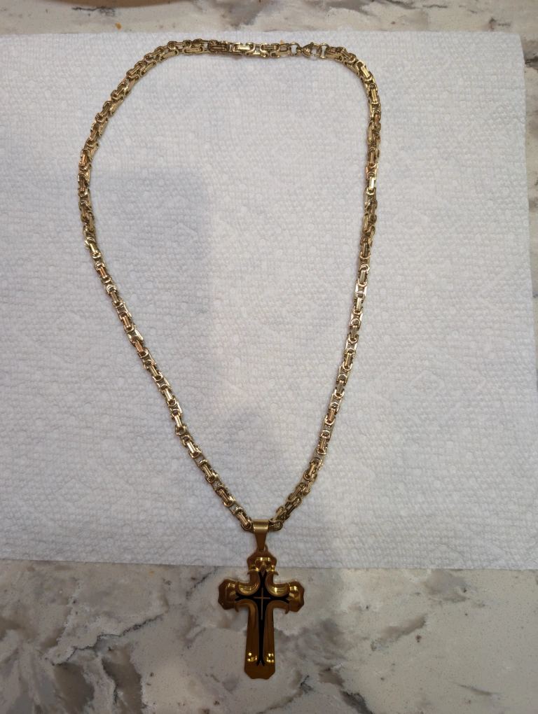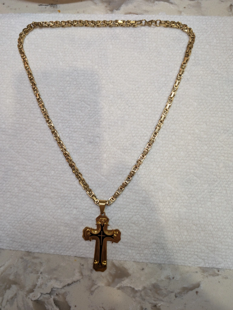 Selling a gold 18 KT Plated Unisex cross pendant necklace. New