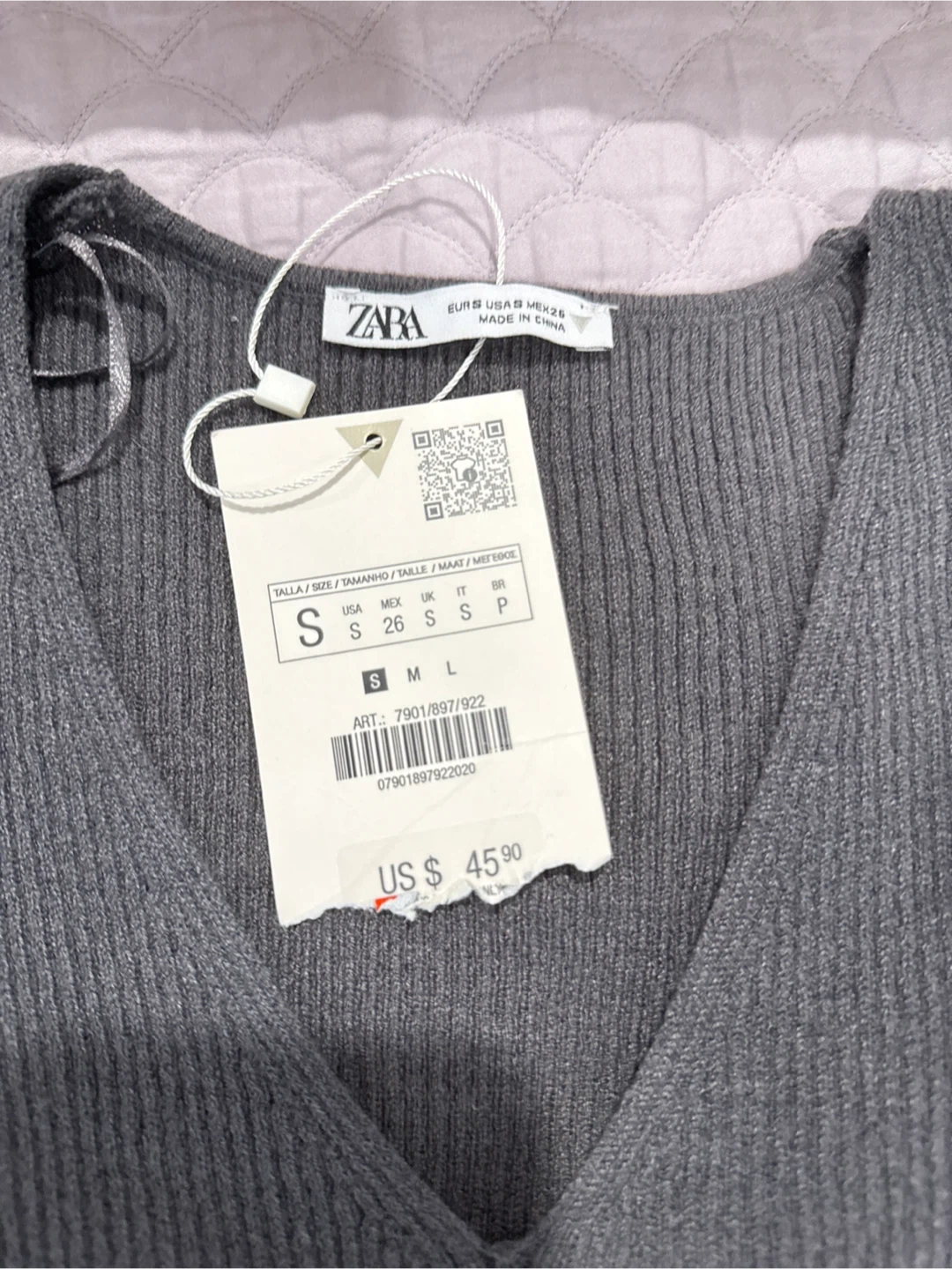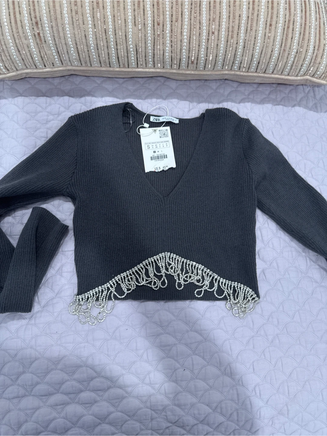 25Selling a cute Zara gray knit top! It's a size small and features a stylish fringe detail. Originally bought for $45.90