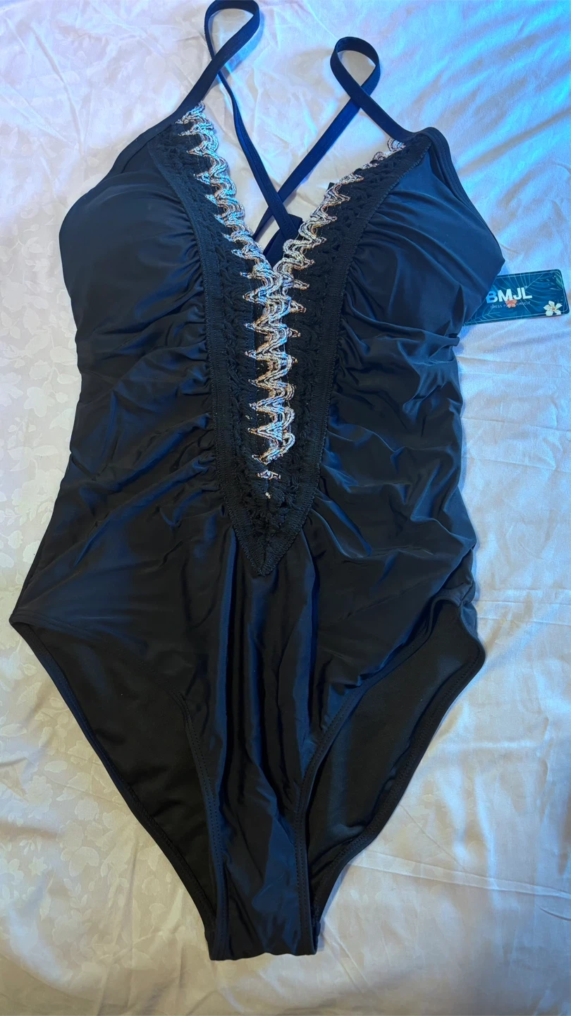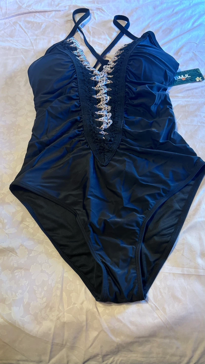 1000+Selling a black one-piece swimsuit from SMJL. It features a lace-up design in the front and an open back with tie straps. Good for your winter vacay or your next summer!