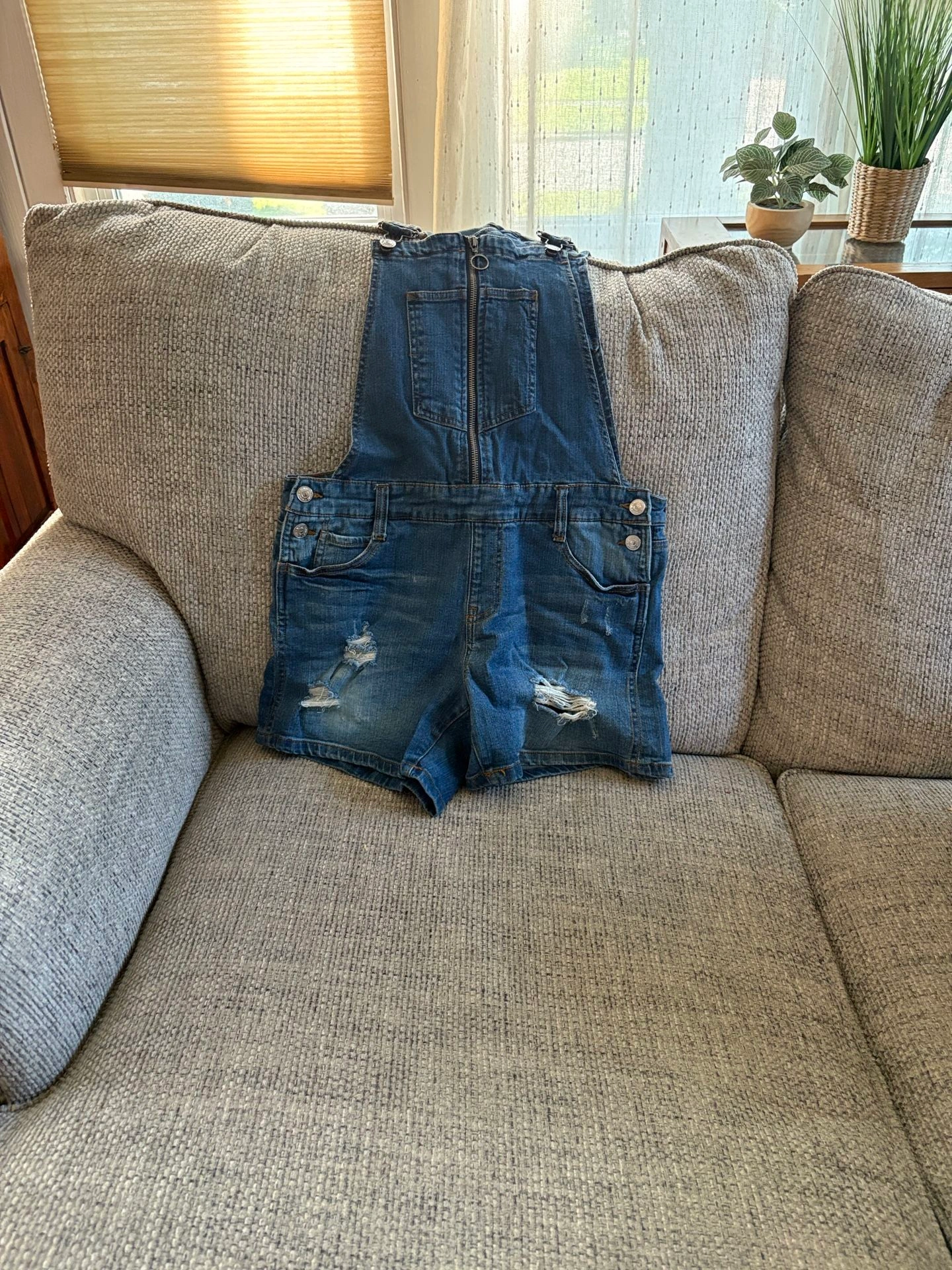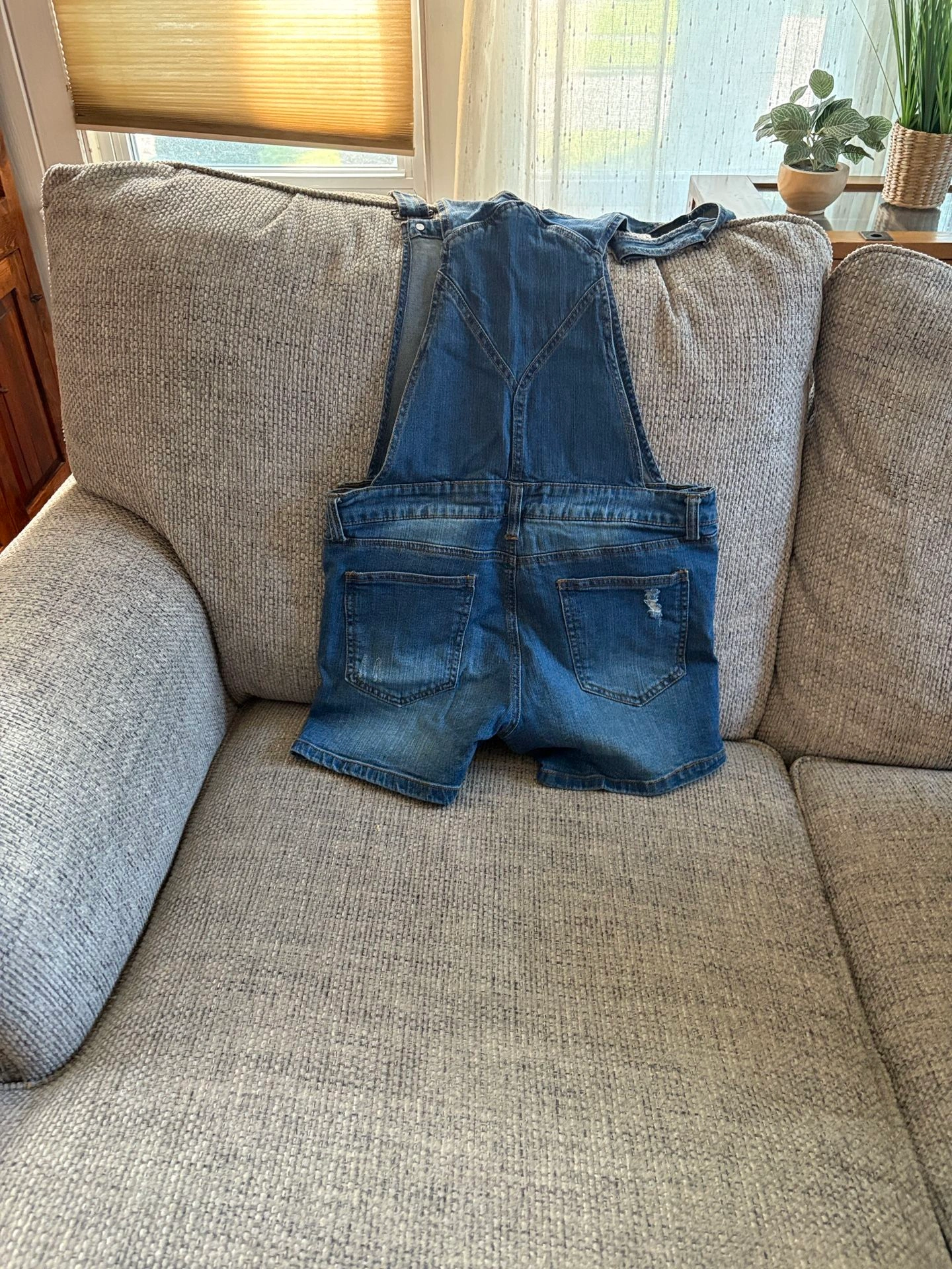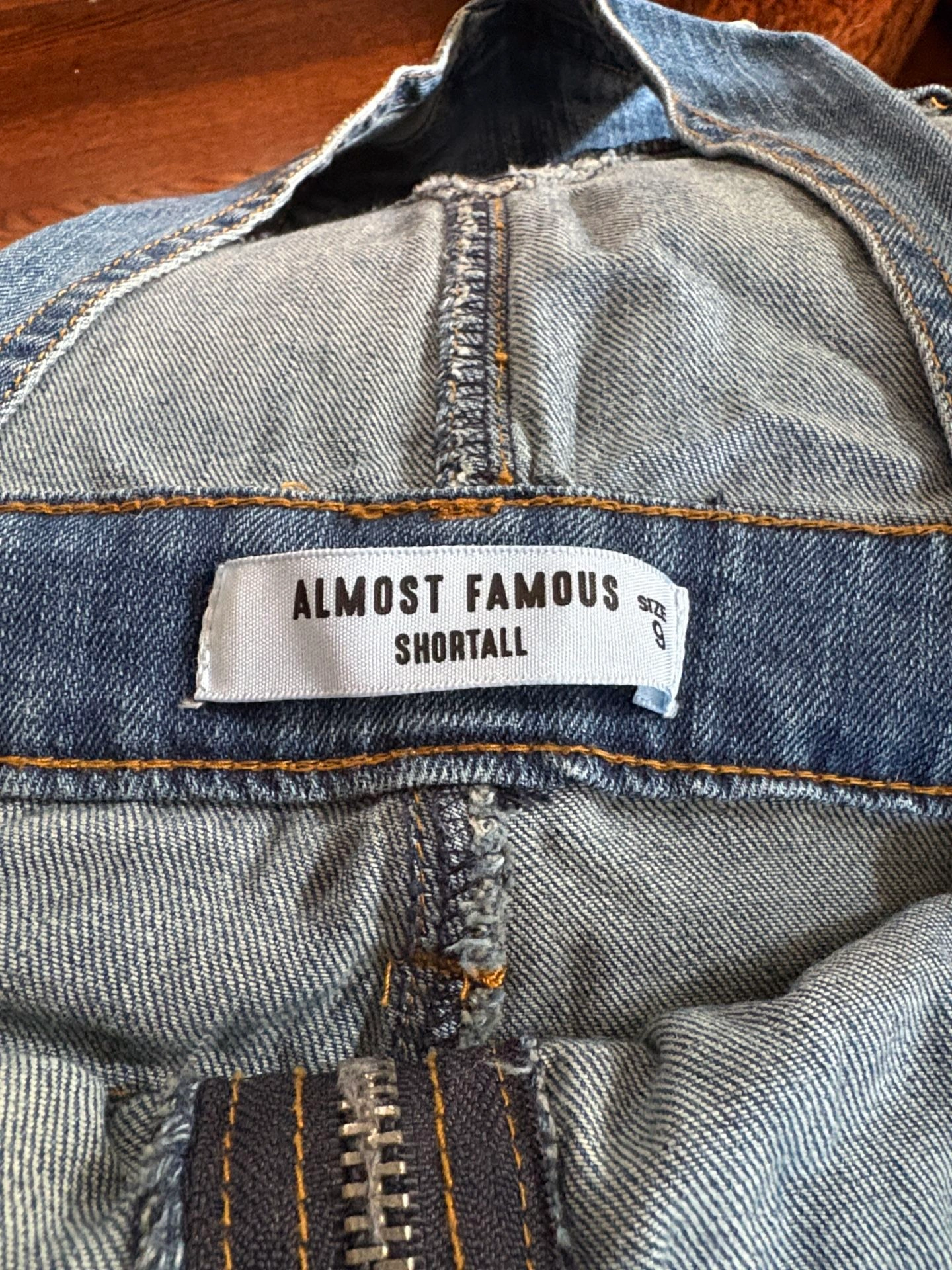 Distressed shorts overalls with front zipper and side buttons. Size Type: Juniors Style: Jean shorts Brand: Almost famous