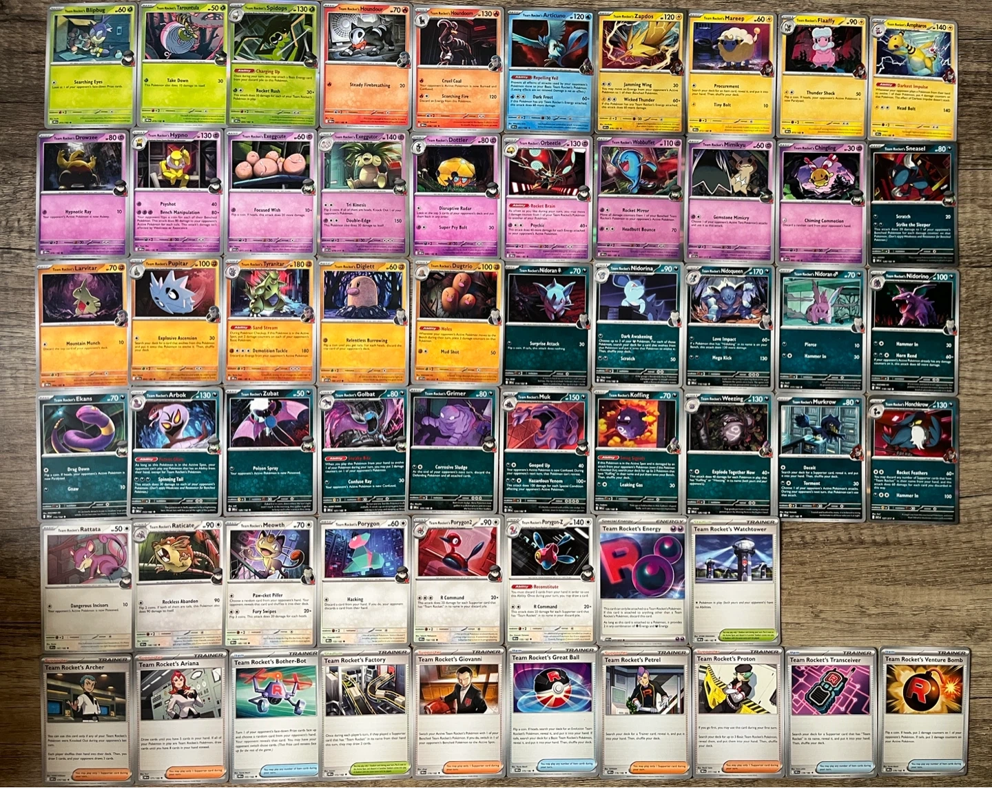 Great for collectors or trainers looking to run a Team Rocket deck. Selling as single cards or as a whole set of over 100 cards; please contact for card prices.