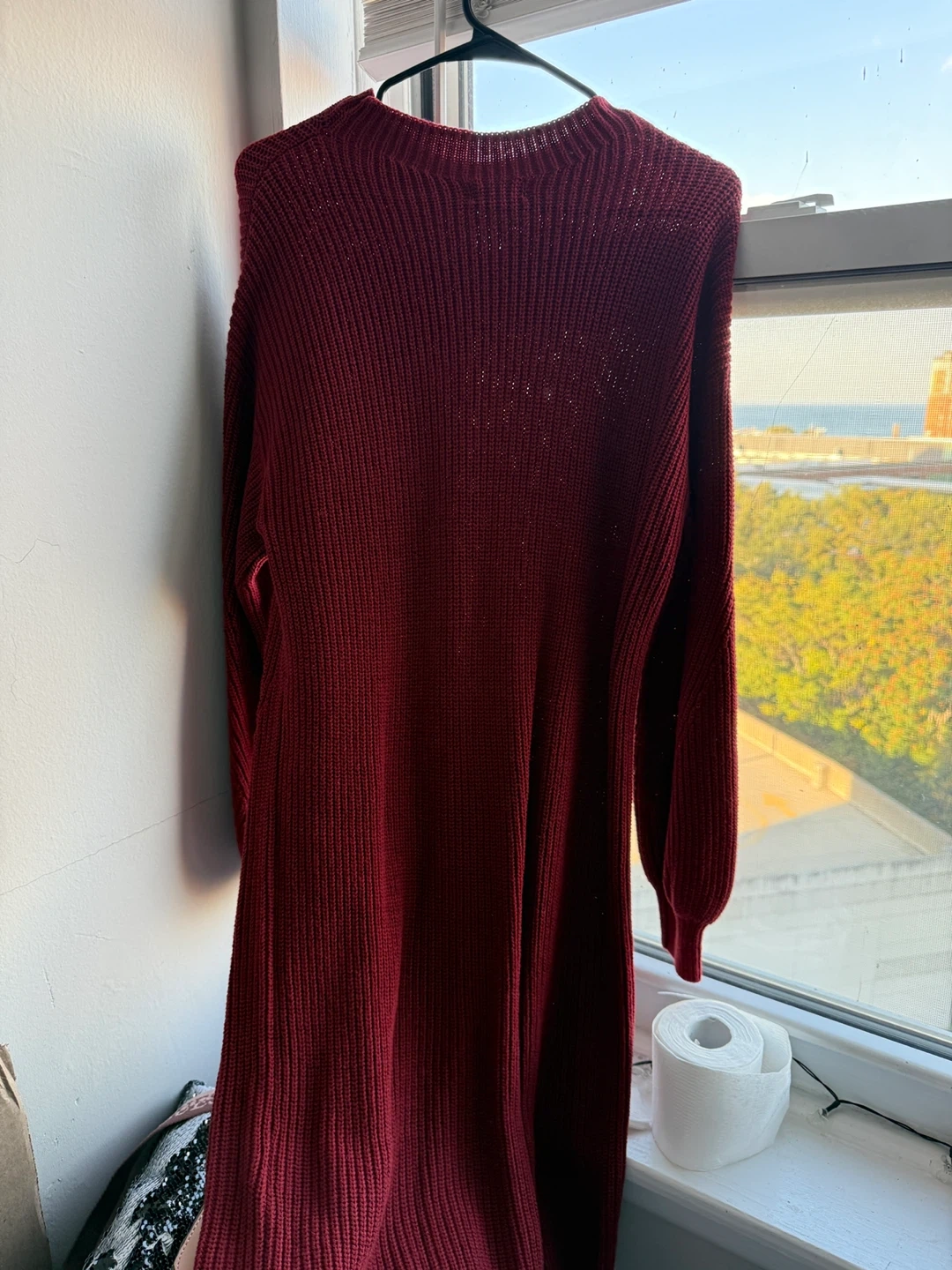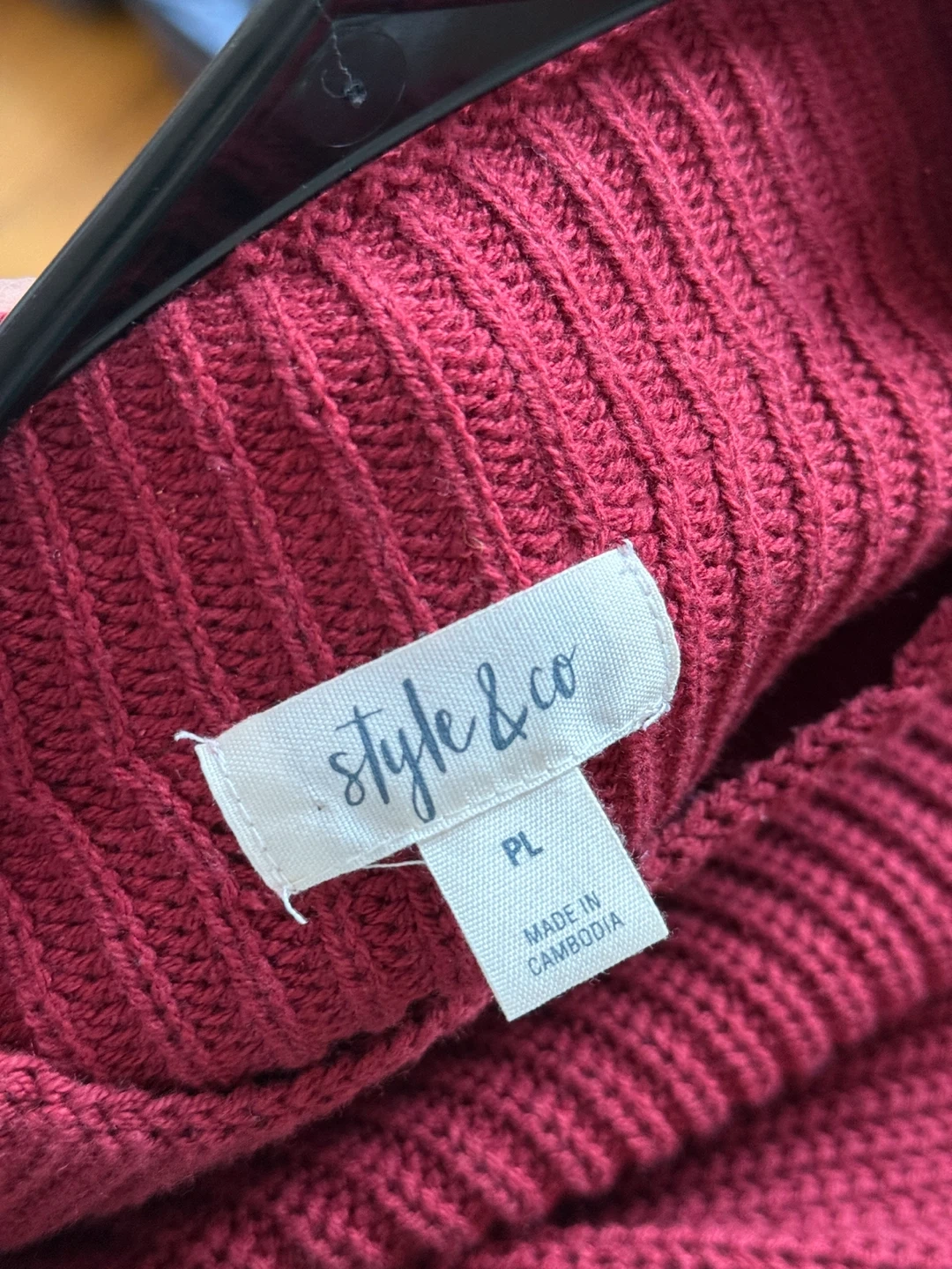 Selling a Style & Co. knit dress in a lovely burgundy color. It's a size PL and perfect for cooler weather. The material is soft and comfortable, making it a great addition to your wardrobe