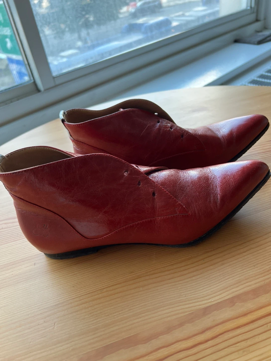 Leaving NYC in the Winter 🥲 One of the best pairs of designer shoes I have and hope it finds a new home 🙏 Size 8.5 Selling a pair of Fly London ankle boots in red leather. They show some signs of wear but are still in good condition and ready for a new home!