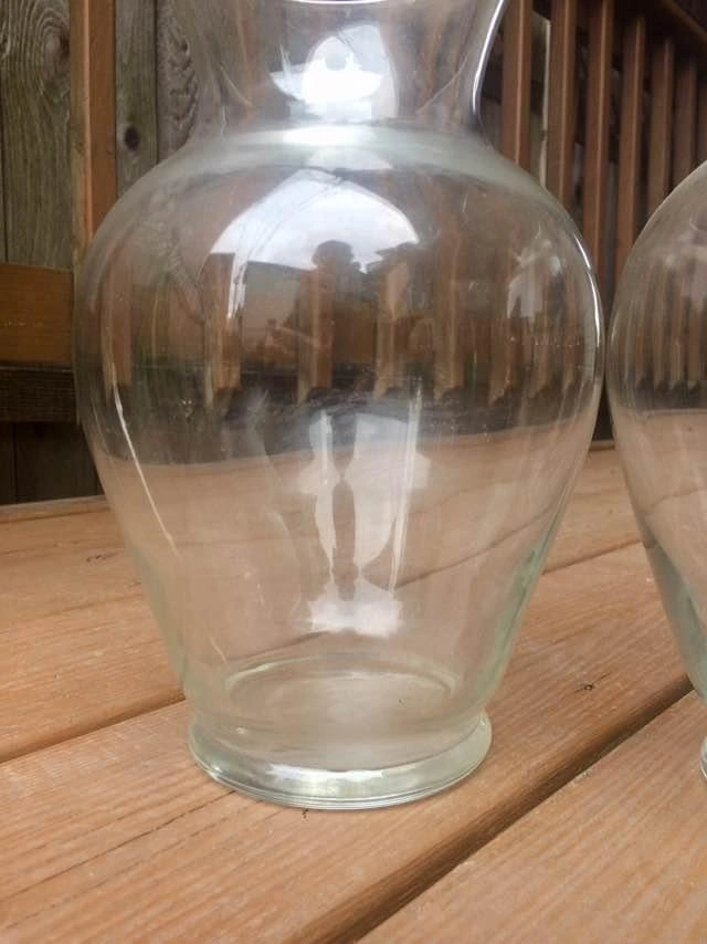 Pair Of Wide Bottom Glass Vases - 11” Tall Vases are in excellent condition with no cracks or chips. They measure 11” tall x 5.25” mouth diameter x 7” at widest point x 4” bottom diameter. Classic design works with any decor. From a smoke and pet free home. Check out in person before purchasing. Thanks for looking.
