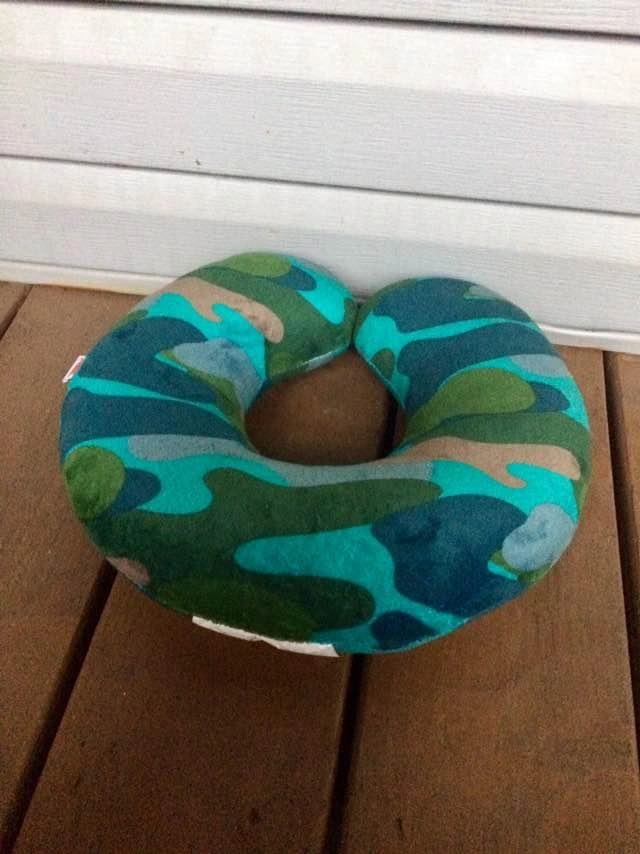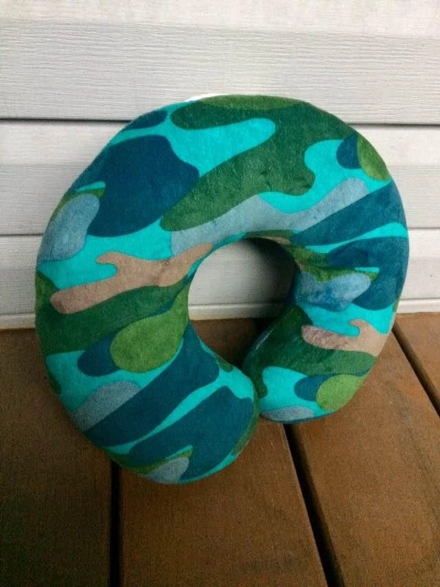 One size fits most, memory foam neck pillow. Great for travel, the office or relaxing at home. Measures 11 x 3 x 11. This pillow was used once or twice and is very clean and in like new condition. Shell and fill are 100% polyester. From a smoke and pet free home. Check out in person before purchasing. Thanks for looking.