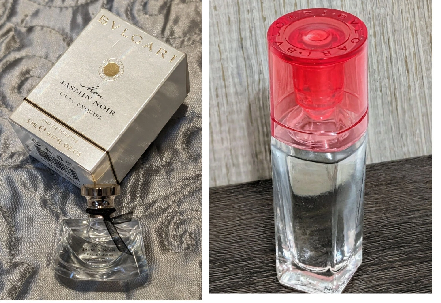 102Selling a cute bundle of two authentic Bvlgari Eau de Toilette mini perfumes, perfect for travel, collecting, or discovering a new favorite scent! Both are in excellent condition. What you get: Bvlgari Mon Jasmin Noir L'Eau Exquise Size: 5 mL / 0.17 fl. oz. (Miniature splash bottle) Condition: Brand new, unused, still in the original box. Scent Profile: A fresh, luminous floral scent with notes of White Jasmine, Pomelo, and Green Almond. Elegant and refreshing. Bvlgari Omnia Coral Size: 5 mL (Miniature splash bottle) Condition: Excellent, near-full condition (please see photo for current level). Scent Profile: A vibrant, floral-fruity scent inspired by the energy of red coral. Key notes include Hibiscus, Water Lily, and Goji Berries. Selling as a bundle only. Great opportunity to own two designer mini bottles! Condition: New (Mon Jasmin Noir, in box) and Used/Near-Full (Omnia Coral). Please check photos for details on the Omnia Coral liquid level. **Each item on my page is guaranteed authentic and carefully presented, with relevant product information provided where possible. For safety and scheduling reasons, I do not offer in-store authentication. Please be advised that I'm currently only considering local, straightforward sales to buyers who are ready to purchase as listed.