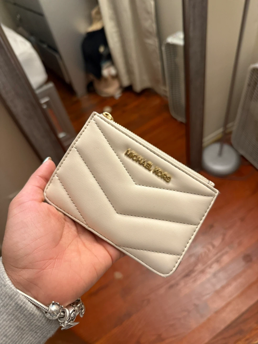 Selling a Michael Kors card holder. It's in great condition and perfect for carrying your essential cards. The quilted leather design adds a touch of elegance!