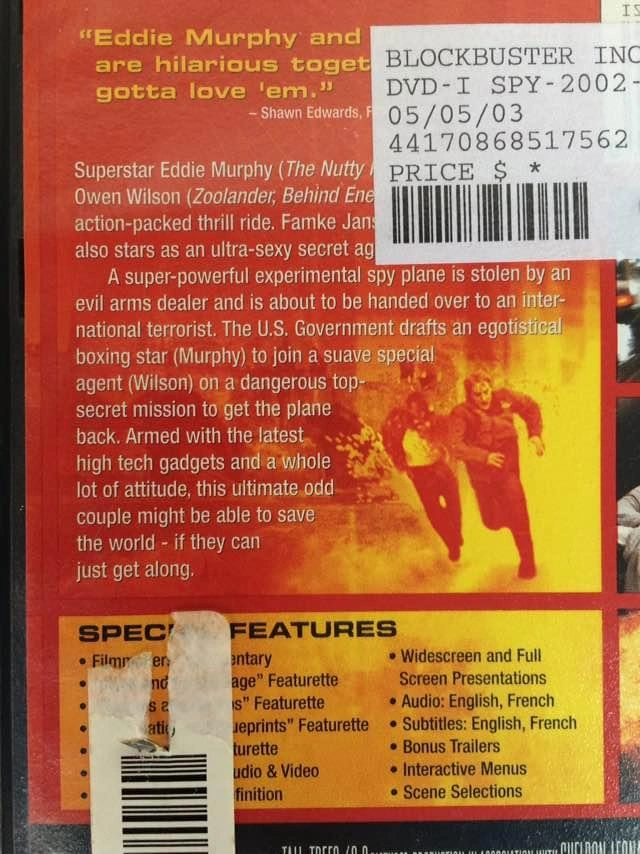 I Spy (DVD) Eddie Murphy Owen Wilson - Excellent Condition 2003 action comedy starring Eddie Murphy and Owen Wilson. Widescreen and full screen presentations. Tons of extras and featurettes only available on the DVD. From a smoke and pet free home. Check out in person before purchasing. Thanks for looking.
