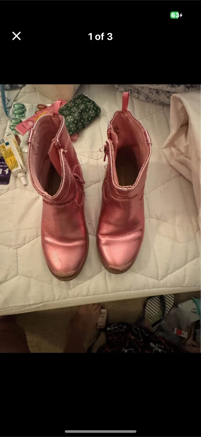 These adorable pink boots are perfect for your little one! They feature cute heart details on the sides and are in good used condition. The size is 10. Old navy girls boots Worn only a few times Size 10