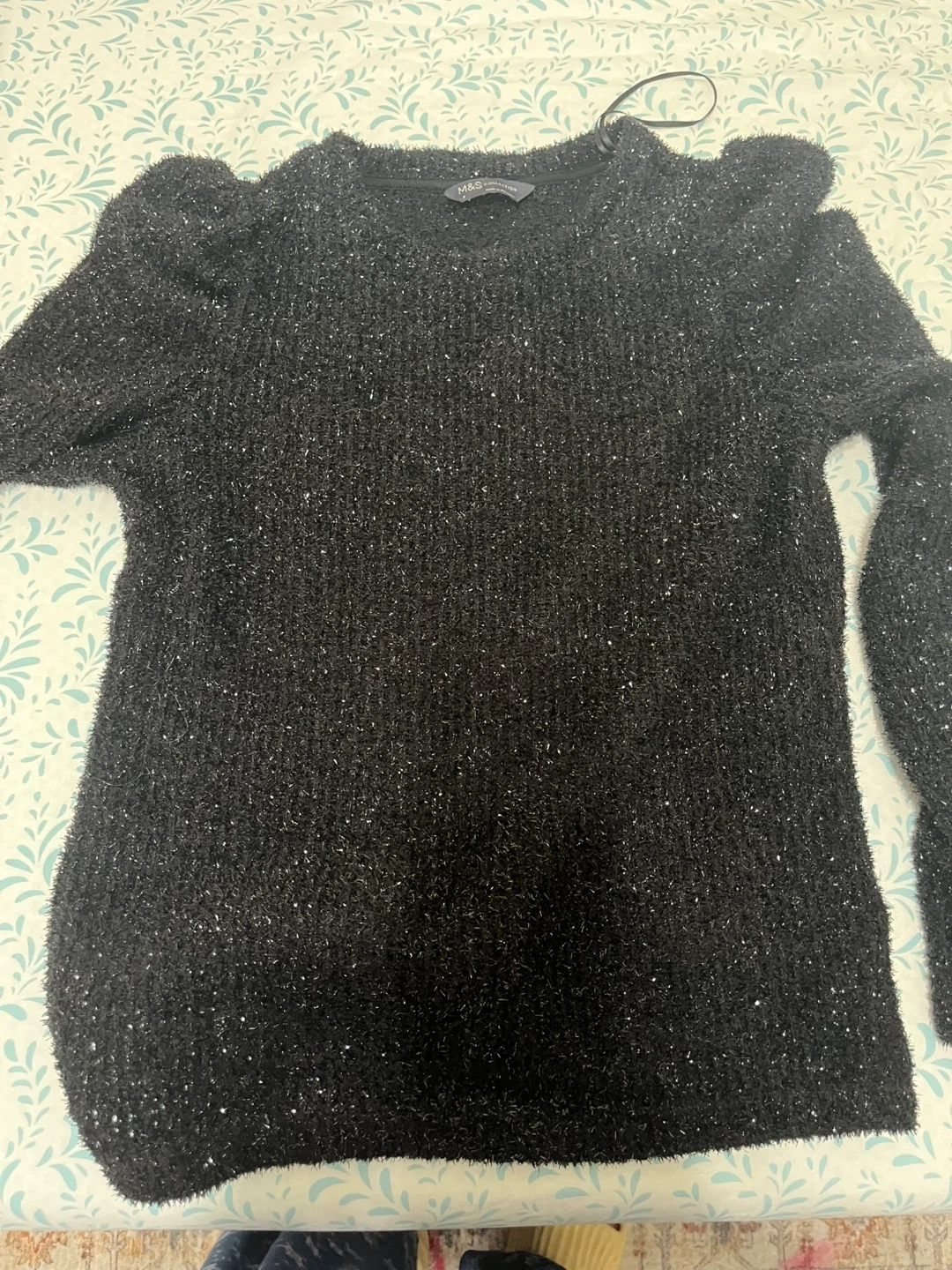 136Selling a lovely black sparkle sweater from M&S Collection! It features a round neck and long sleeves. Perfect for adding a touch of glam to any outfit