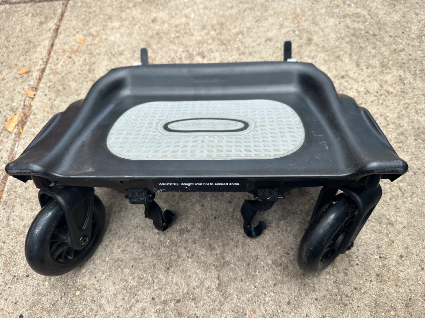 23Selling a used Glider Board stroller attachment. It's in good condition and ready to attach to your stroller for your little one to ride along. Weight limit not to exceed 45lbs