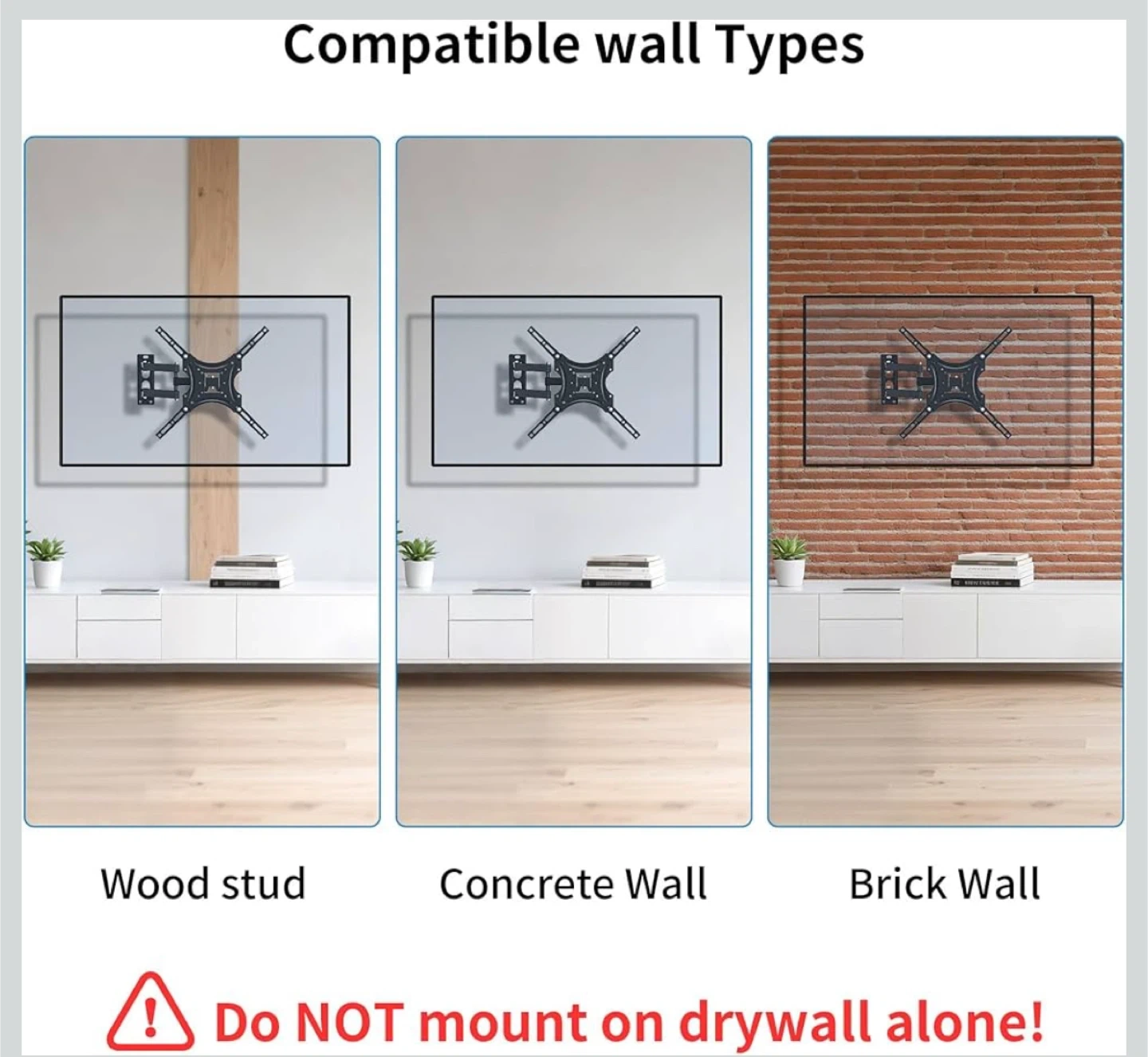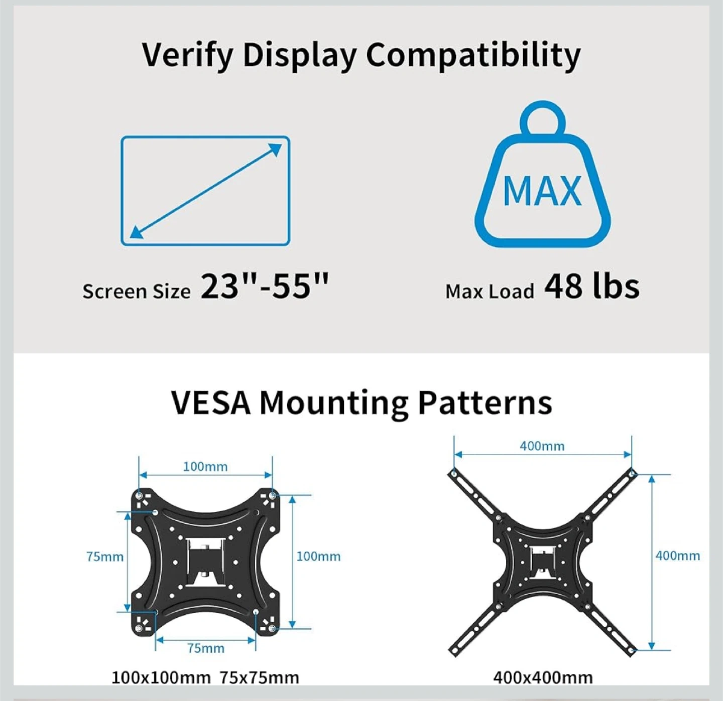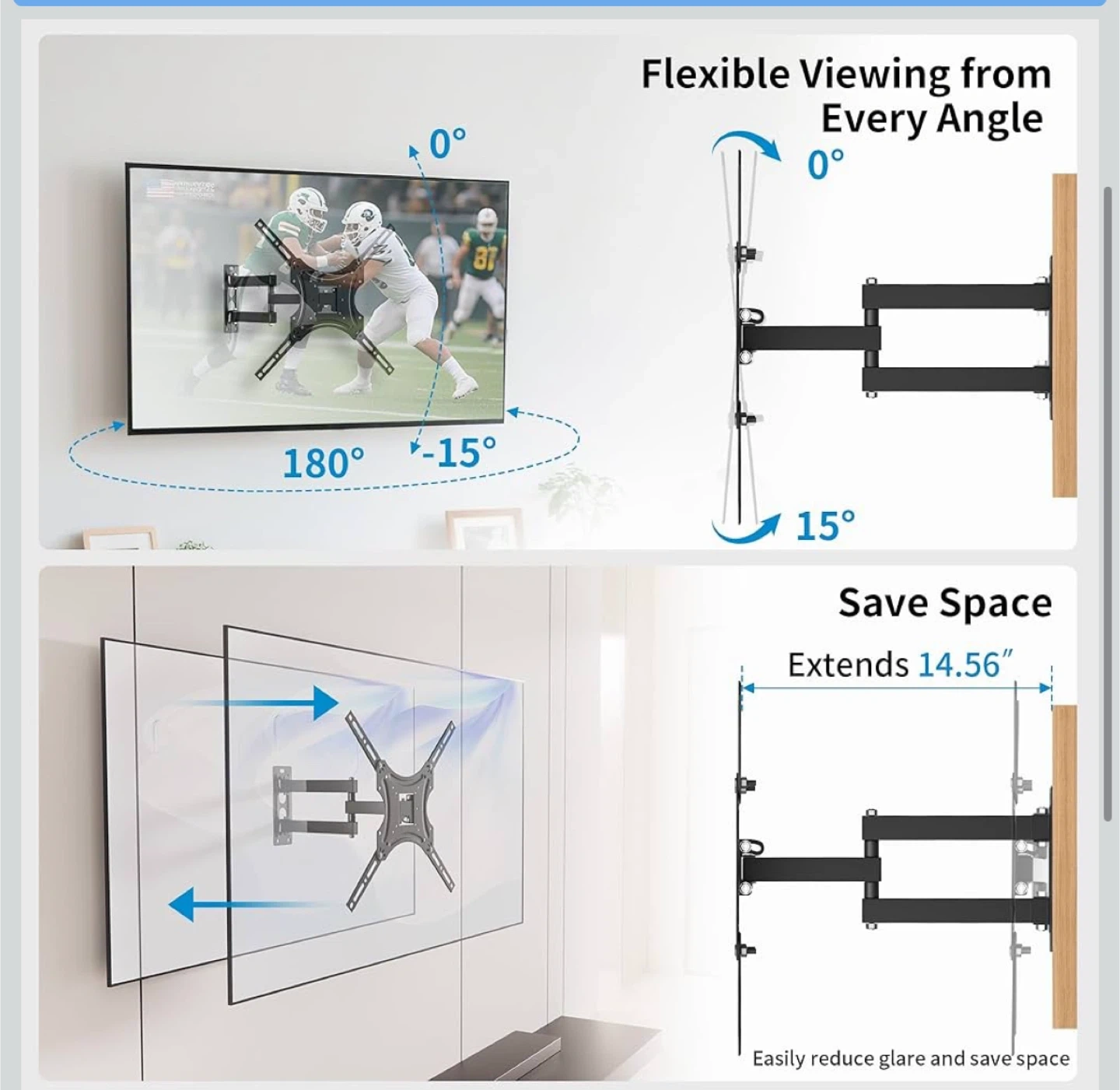 Full Motion TV Monitor Wall Mount Bracket with Swivel, Tilt & Extension, fits 23"-55" Flat Curved Screen TVs & Monitors, VESA 400x400, Holds up to 48 lbs