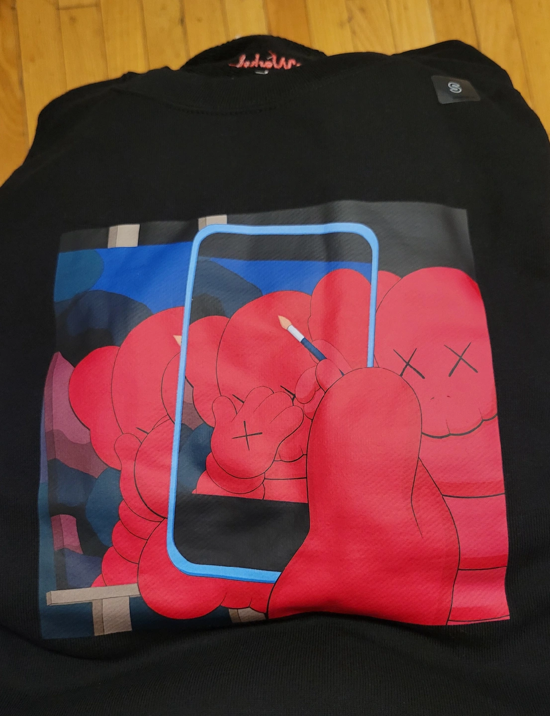 I'm selling a brand new Uniqlo sweatshirt from the KAWS + Andy Warhol collection. It's black and a size S! Still in original packaging with tags attached. The design features artwork by KAWS and Andy Warhol. Perfect for fans of either artist or just cool casual wear