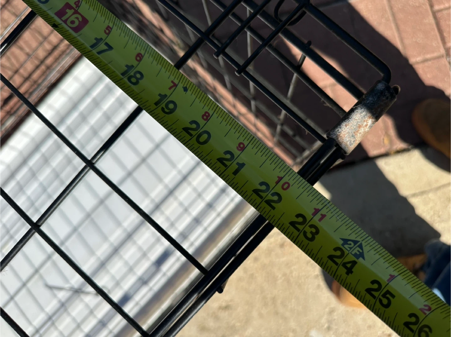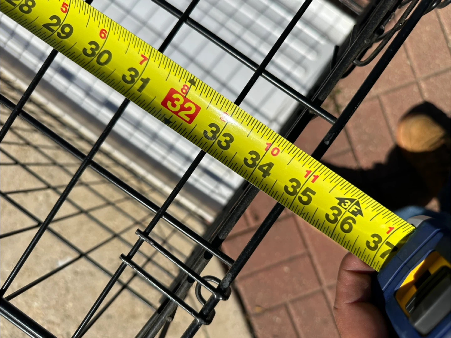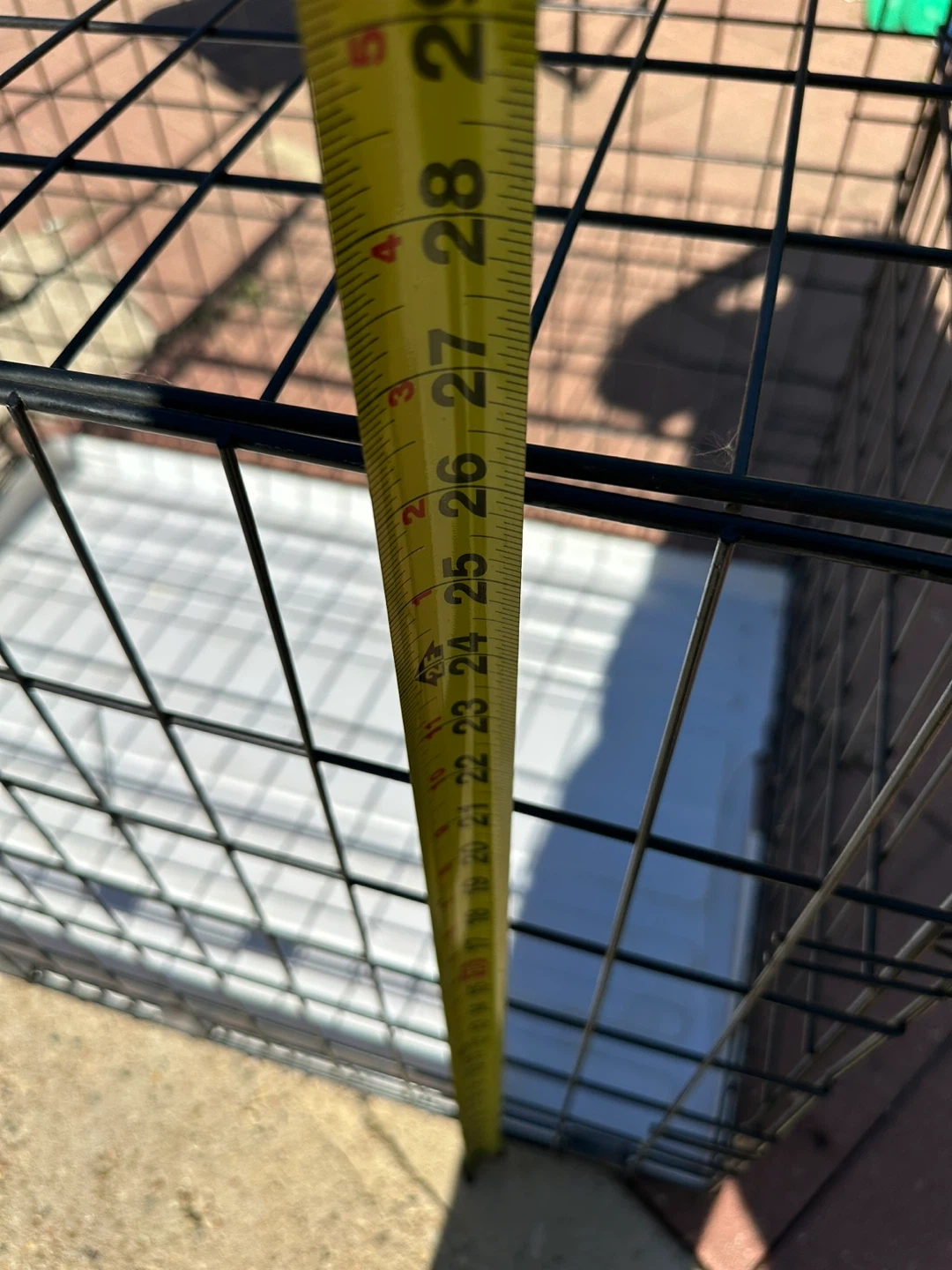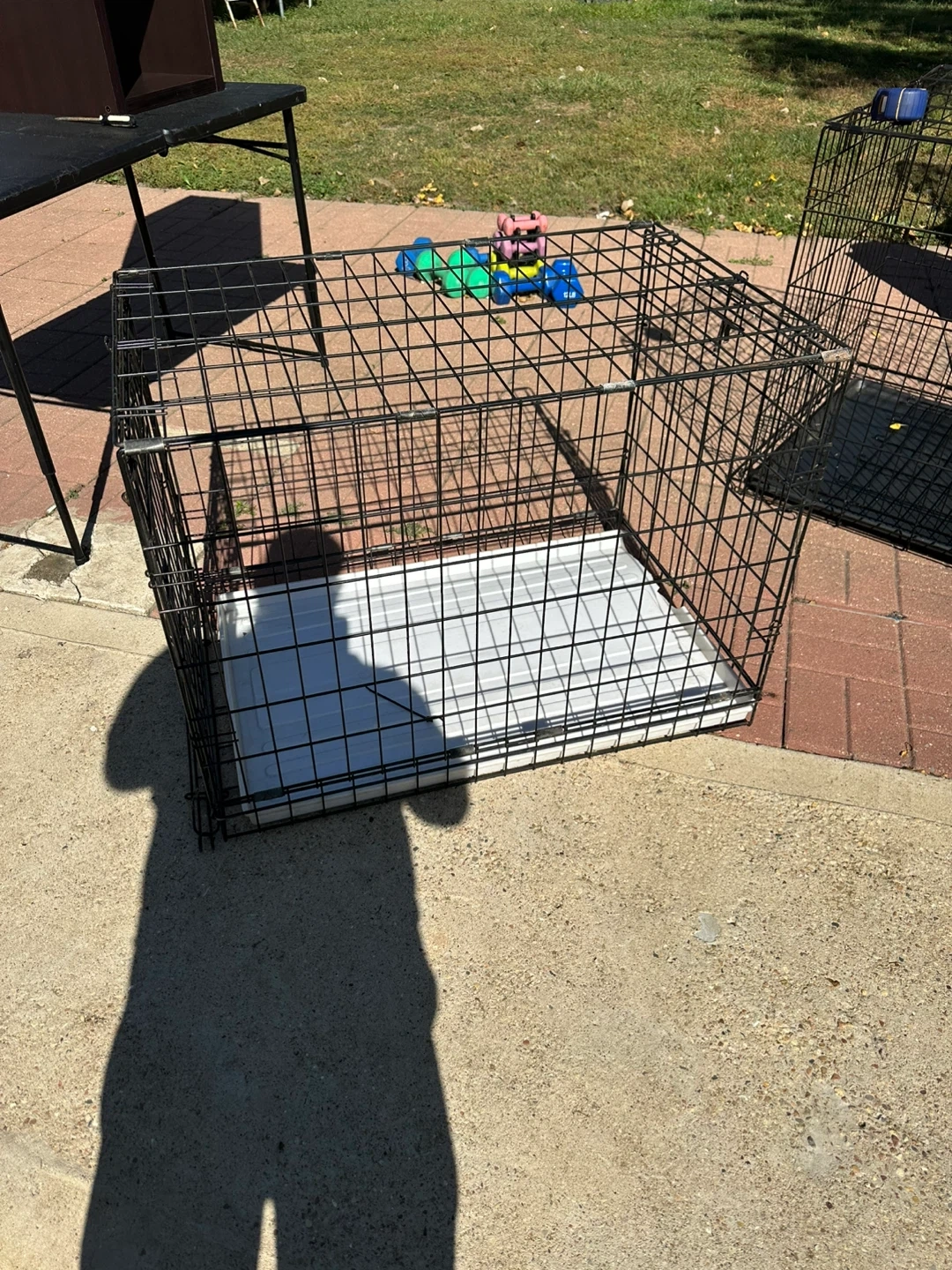 130Selling a used dog crate. It measures approximately 32 inches long, 21 inches wide, and 27 inches tall