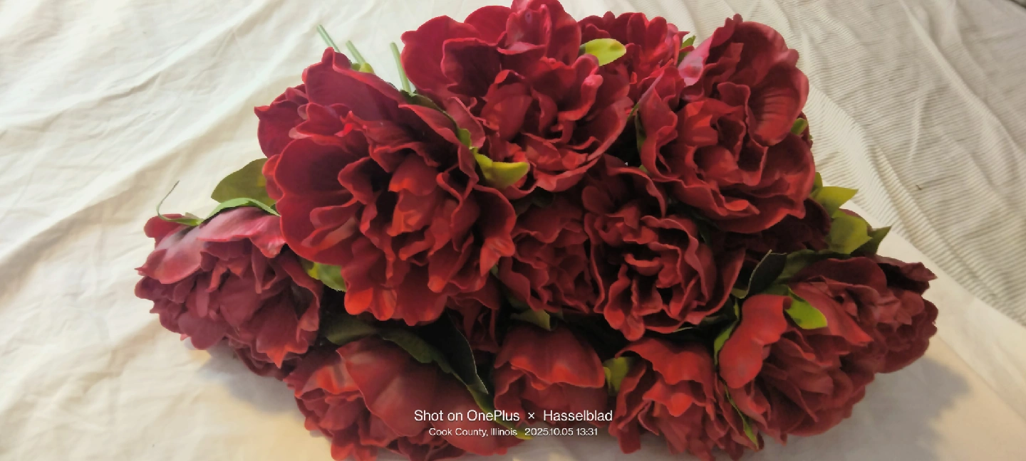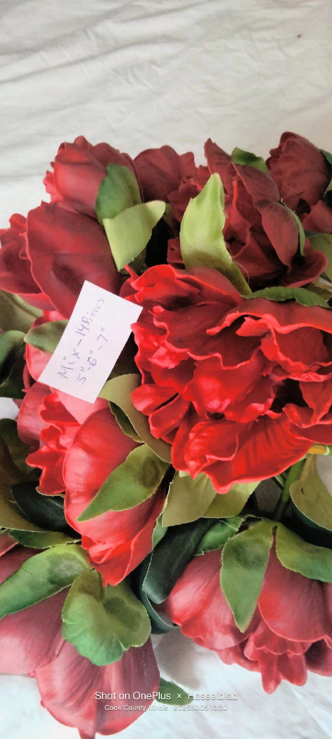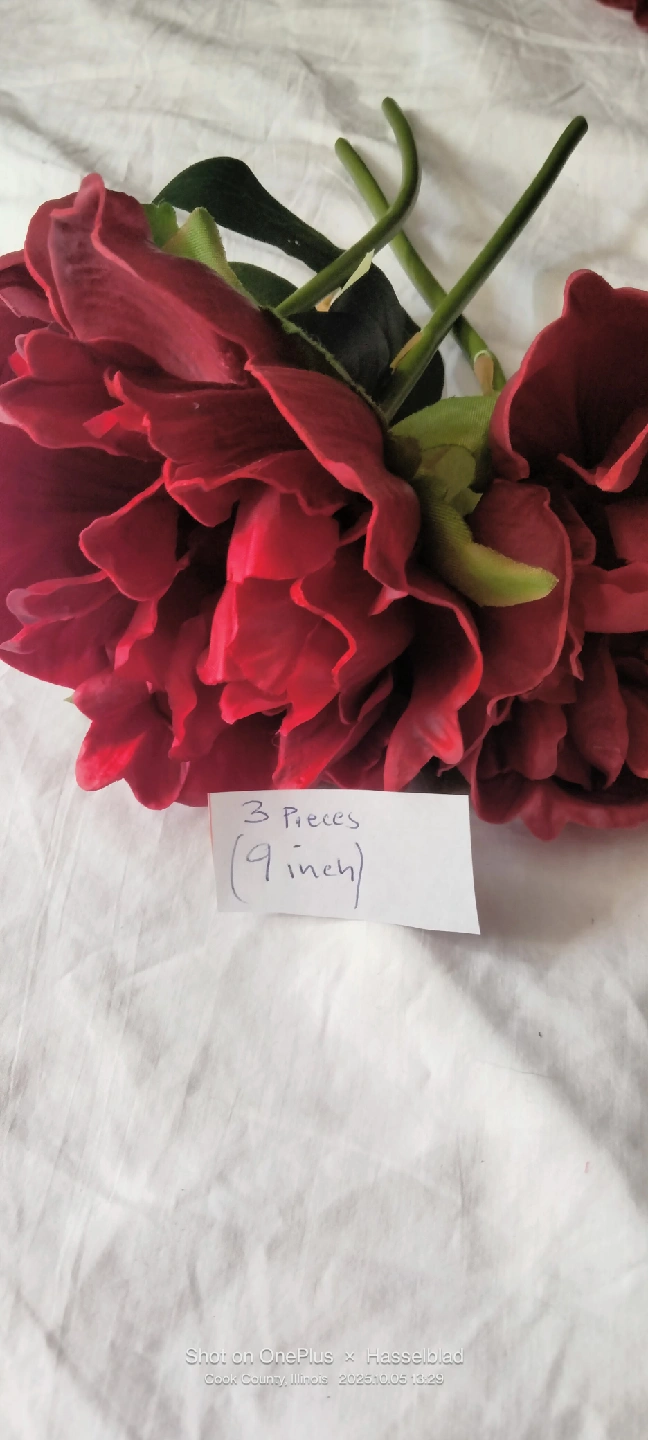 Red artificial Peony for sale. Difrent sizes you can see on a pictures . New, left overs from our project. 25 pieces
