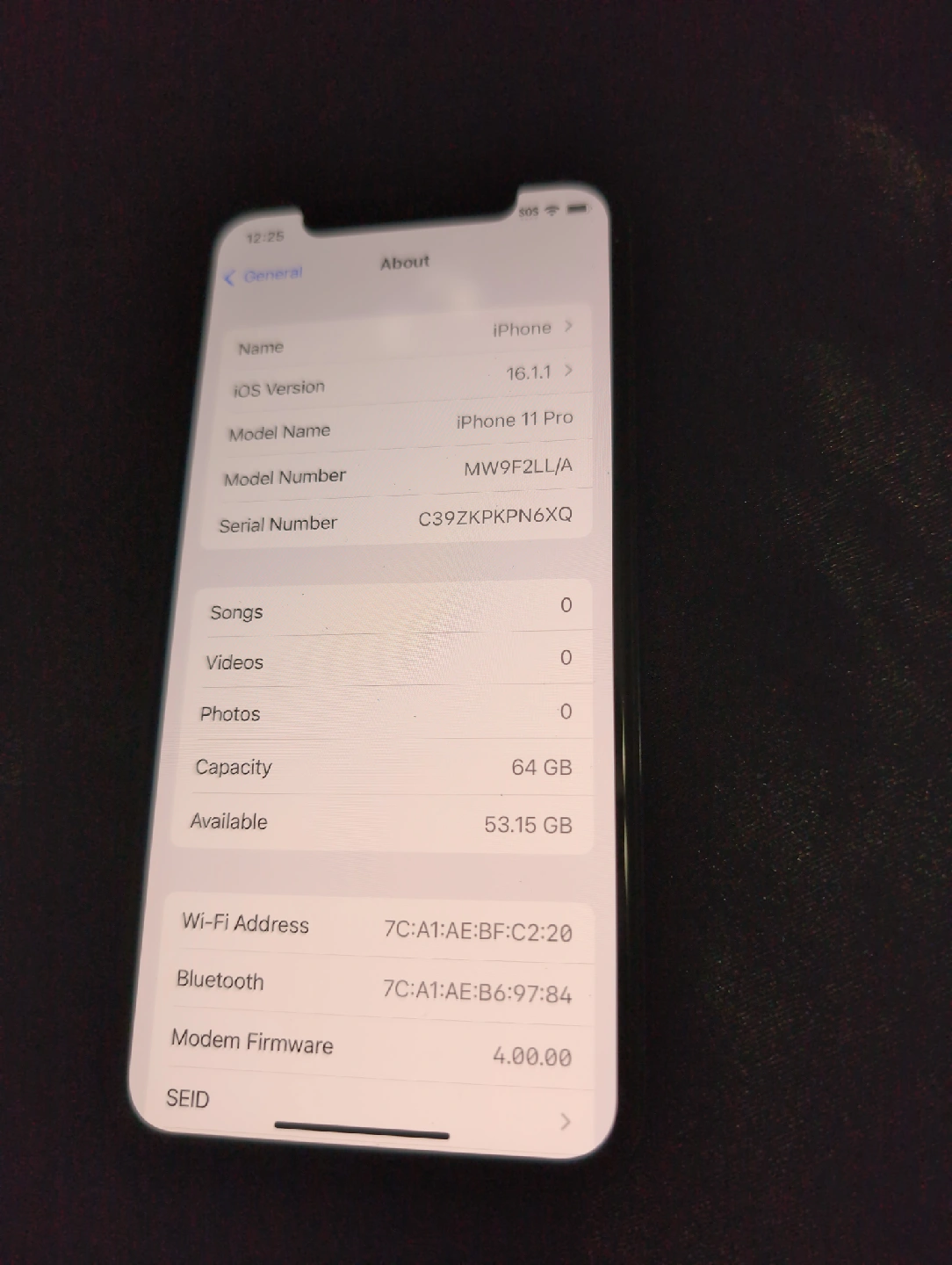 Selling an iPhone 11 Pro with 64GB of storage. It's in good condition and ready for a new owner! Model number is MW9F2LL/A.