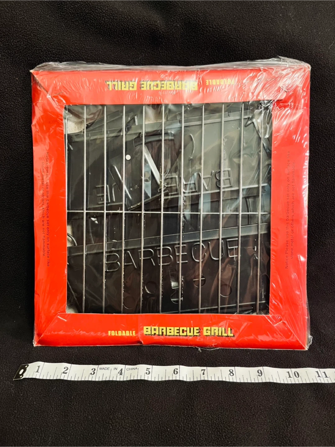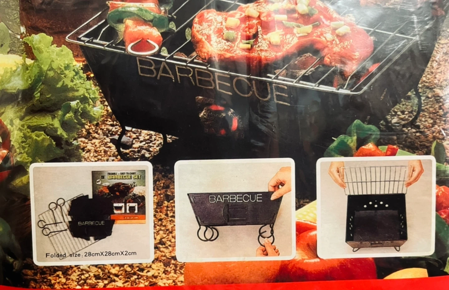 Brand new foldable and easy-to-carry barbecue grill. Portable, lightweight and easily assembled. The folded size is 28cm x 28cm x 2cm. Opened it measures 10”x10”x5”. Still in its original packaging.