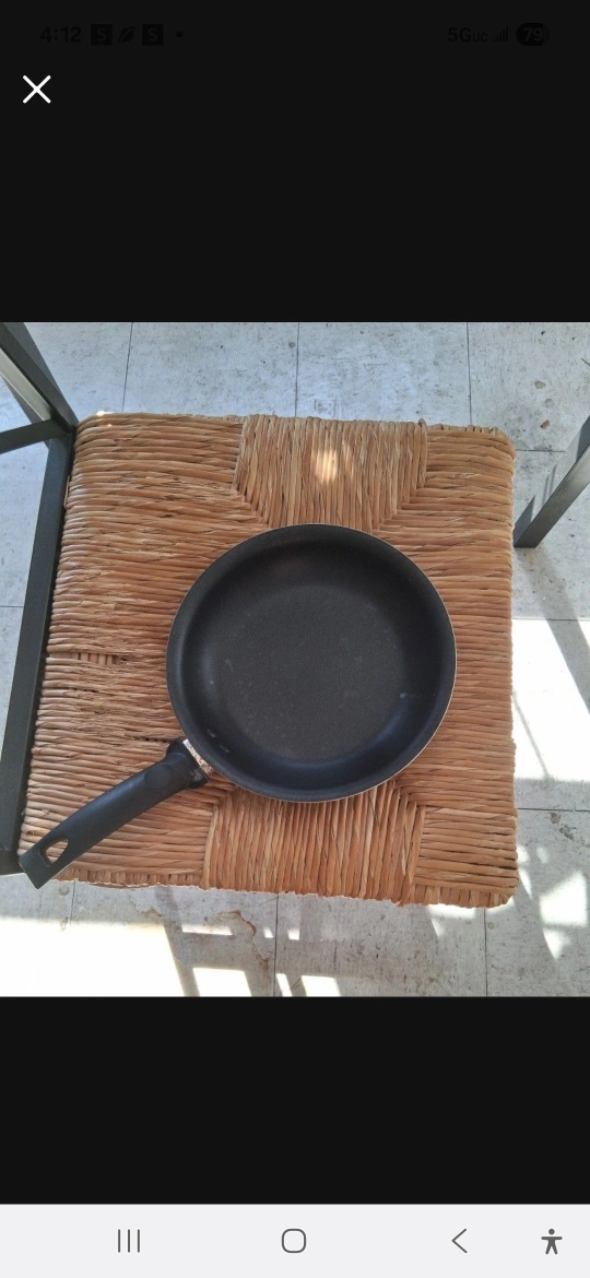 70Selling a used frying pan. It's black and looks like it has been used before. Perfect for cooking up your favorite dishes!