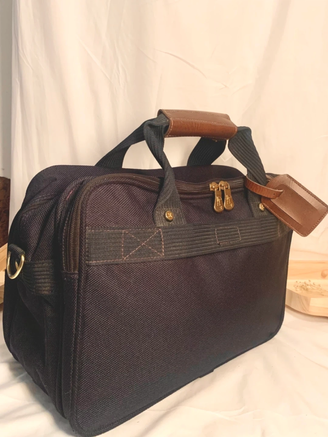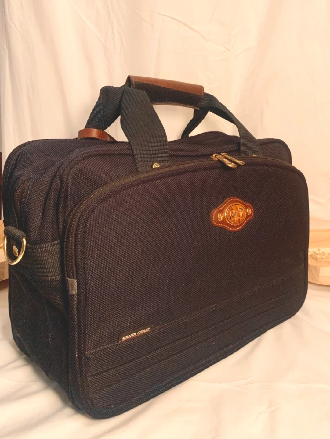 Elevate your travel style with this timeless Ricardo Beverly Hills Santa Cruz Duffel Bag, crafted with durable woven nylon and accented with rich brown leather details. Designed for both business and leisure travelers, it combines sophisticated style with everyday practicality. Features: • Color: Black with brown leather handle wrap and trim • Material: Heavy-duty woven nylon with brass hardware • Handles: Dual reinforced top handles with stitched leather grip • Interior: Clean, lightly padded lining with subtle Ricardo monogram pattern • Compartments: Spacious main compartment with zipper closure + large exterior pocket • Details: Signature gold Ricardo Beverly Hills logo badge, dual zipper pulls, and brass rings for optional shoulder strap Perfect For: Weekend trips, gym use, business travel, or as a stylish carry-on for flights.