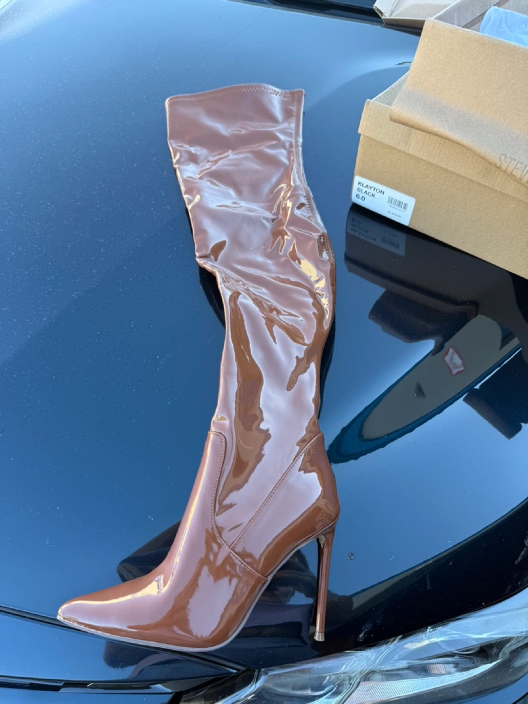 Selling a pair of Steve Madden Klayton boots in brown. They are a size 6 and come with the original box. Tried on but never worn