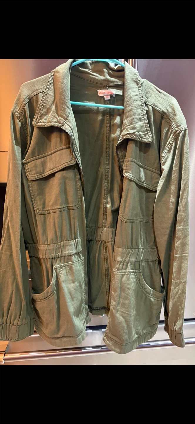65Here's an olive green utility jacket from Knox Rose! It's in great condition and ready for a new home. Perfect for layering or wearing on its own