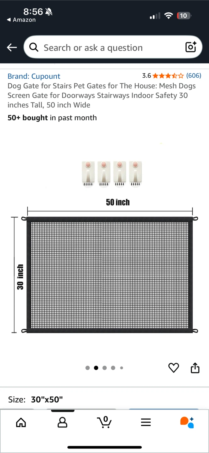 Selling a Cupount dog gate, perfect for keeping your furry friends safe! It's designed for stairs and doorways, and the mesh screen provides a secure barrier. The gate measures 30 inches tall and 50 inches wide, making it suitable for various openings