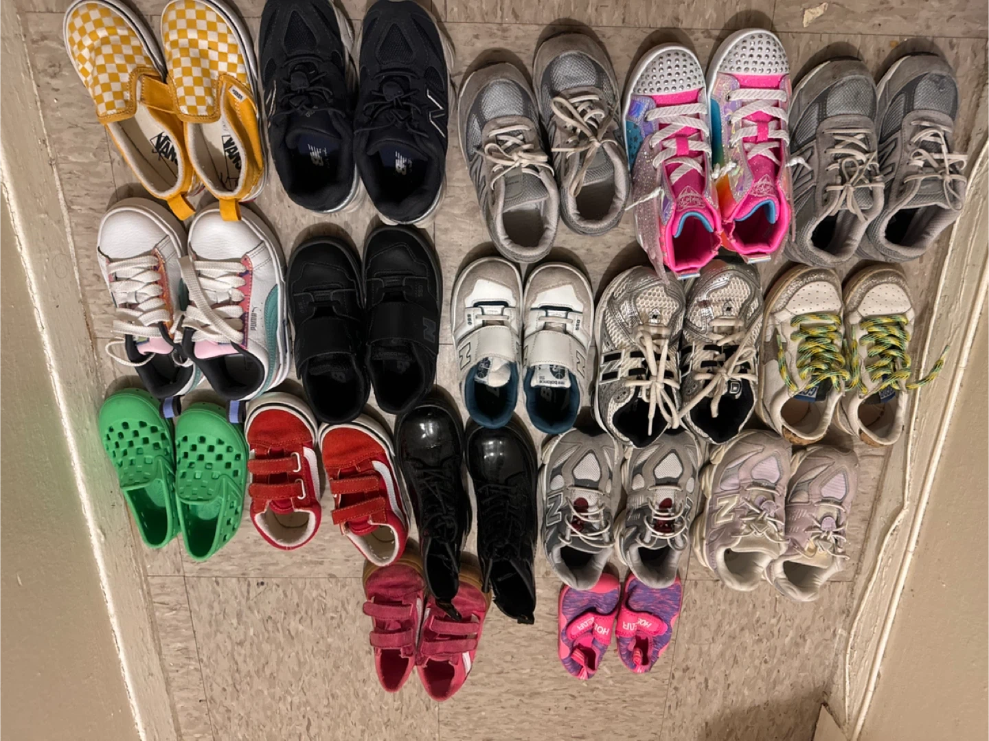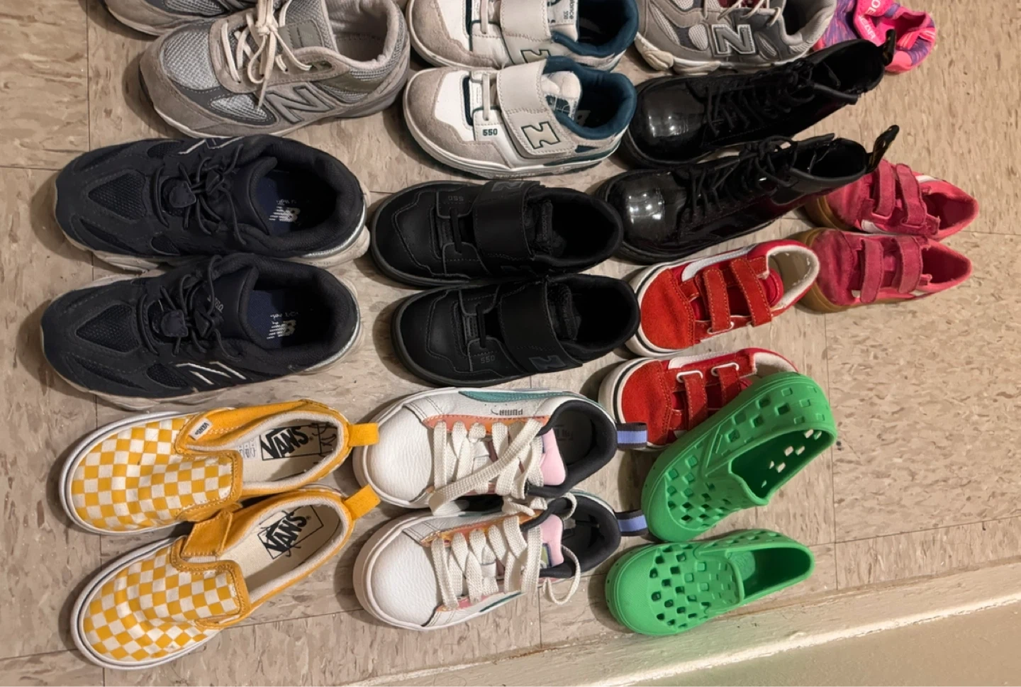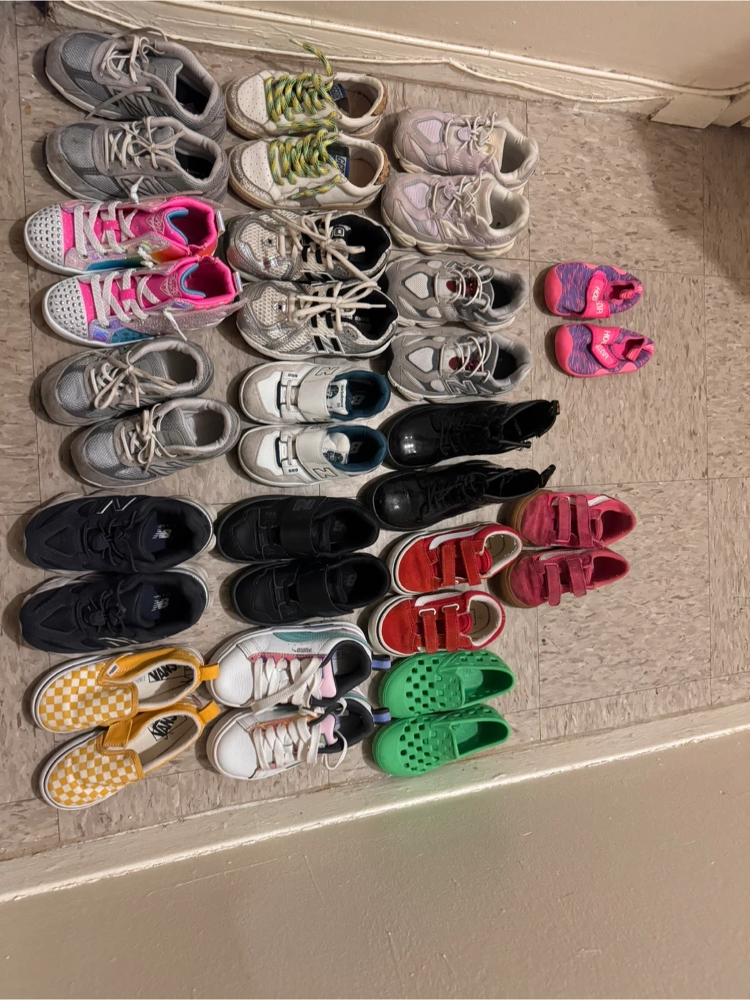 Selling a mixed lot of kids' shoes! There are various brands like New Balance, Vans, and Puma. Sizes vary, so please check the photos for details. They're all in used condition, perfect for play or everyday wear! Puma Sz9.5 vans,Green water shoes Sz9 Vans Yellow checkers Sz9 New Balance Navy Blue Sz10 NB Grey-Grey Sz9M NB -All Black leather Sz10 NB- Green & White leather Sz 9 NB-Sliver& Grey Sz 11 fit Sz10 NB -Lavender Sz10 NB- Grey on Grey Sz10 NB-Grey & white Sz10 Dr. Martin Patten Boat Sz10 Red Vans with strips Sz10 THE GREY GOOSE SNEAKER IS NOT INCLUDED