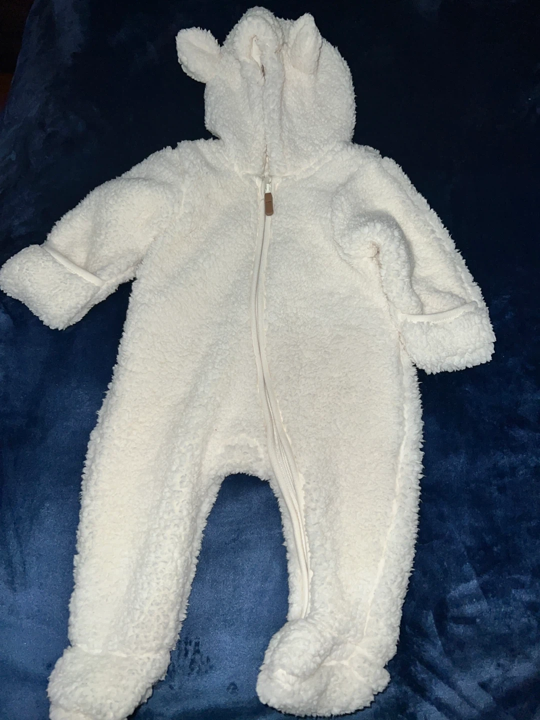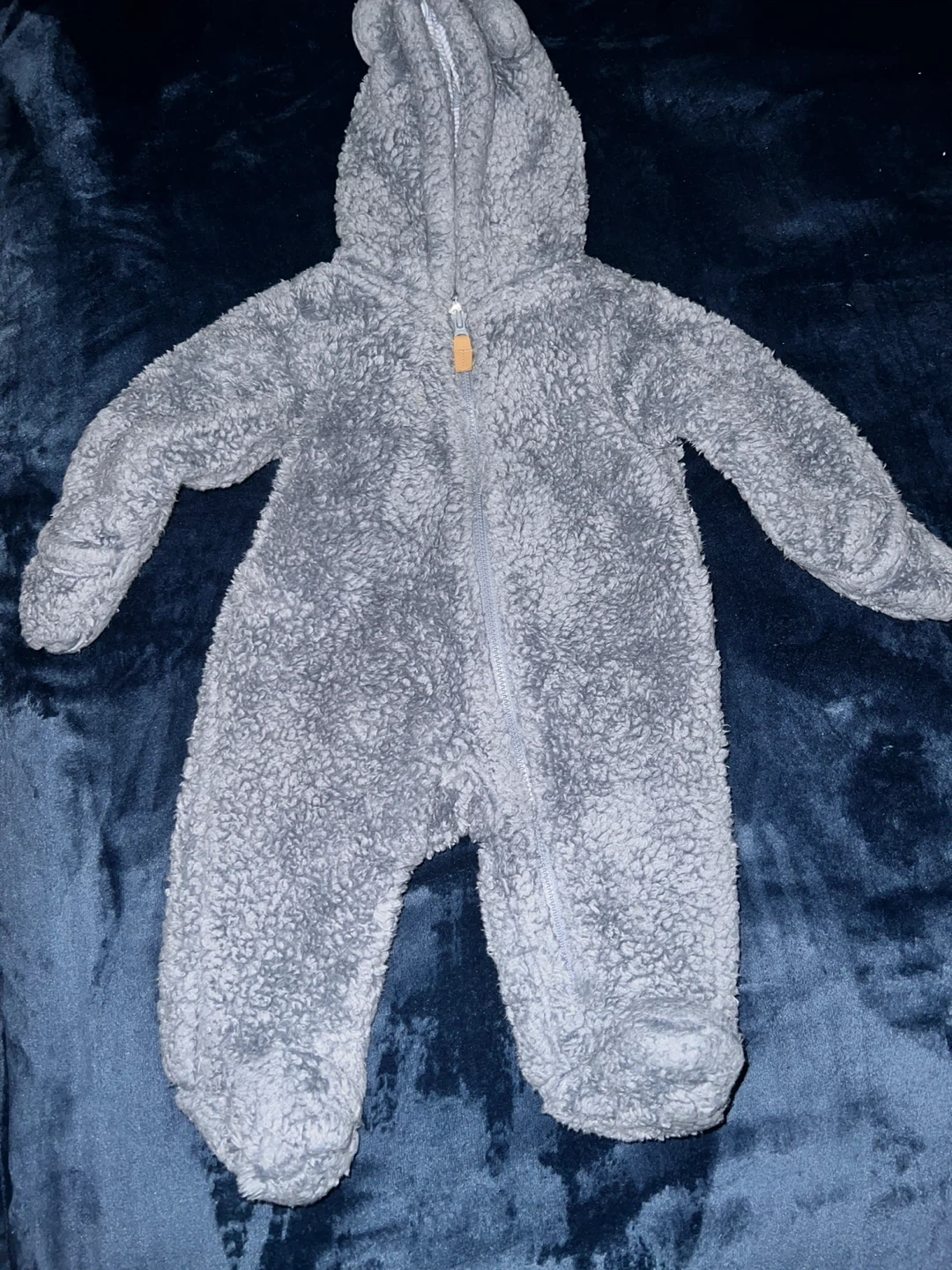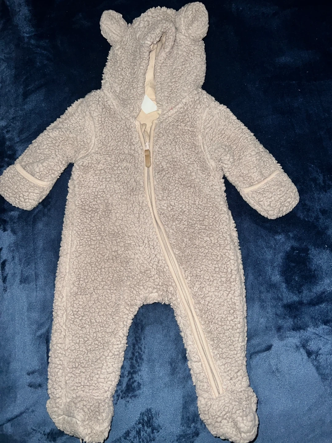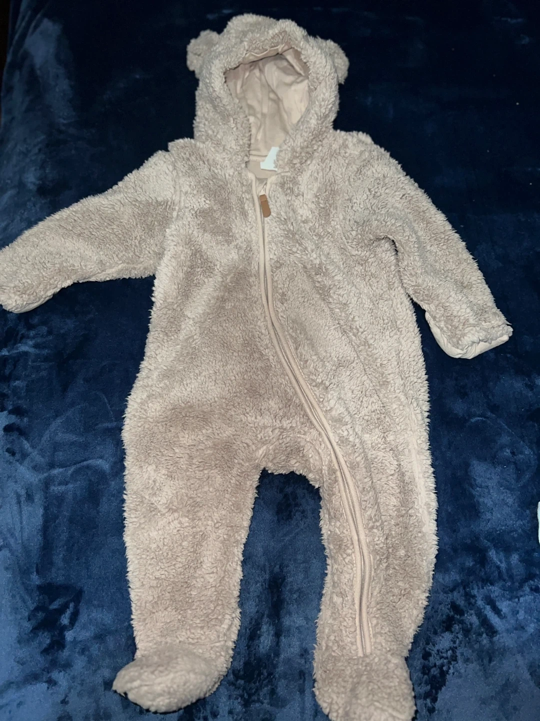 A collection of baby snowsuits and rompers. These are perfect for keeping your little one warm and cozy during the colder months. They are in good condition and ready for a new home! They come in a variety of colors and styles, including a Michael Kors snowsuit.