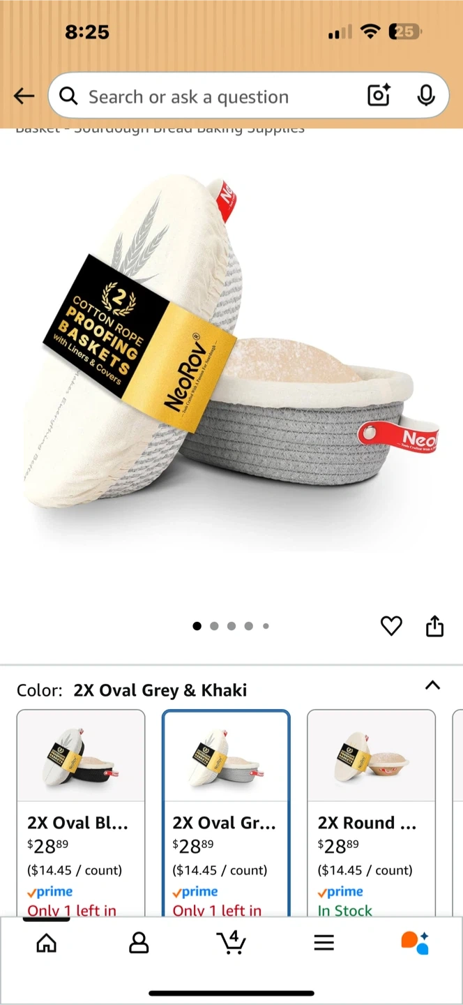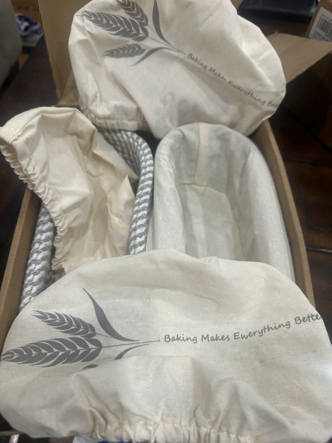 75I'm selling a set of NeoRov cotton rope proofing baskets. The set includes liners and covers. They are gray and khaki in color. The baskets are perfect for sourdough bread baking supplies!